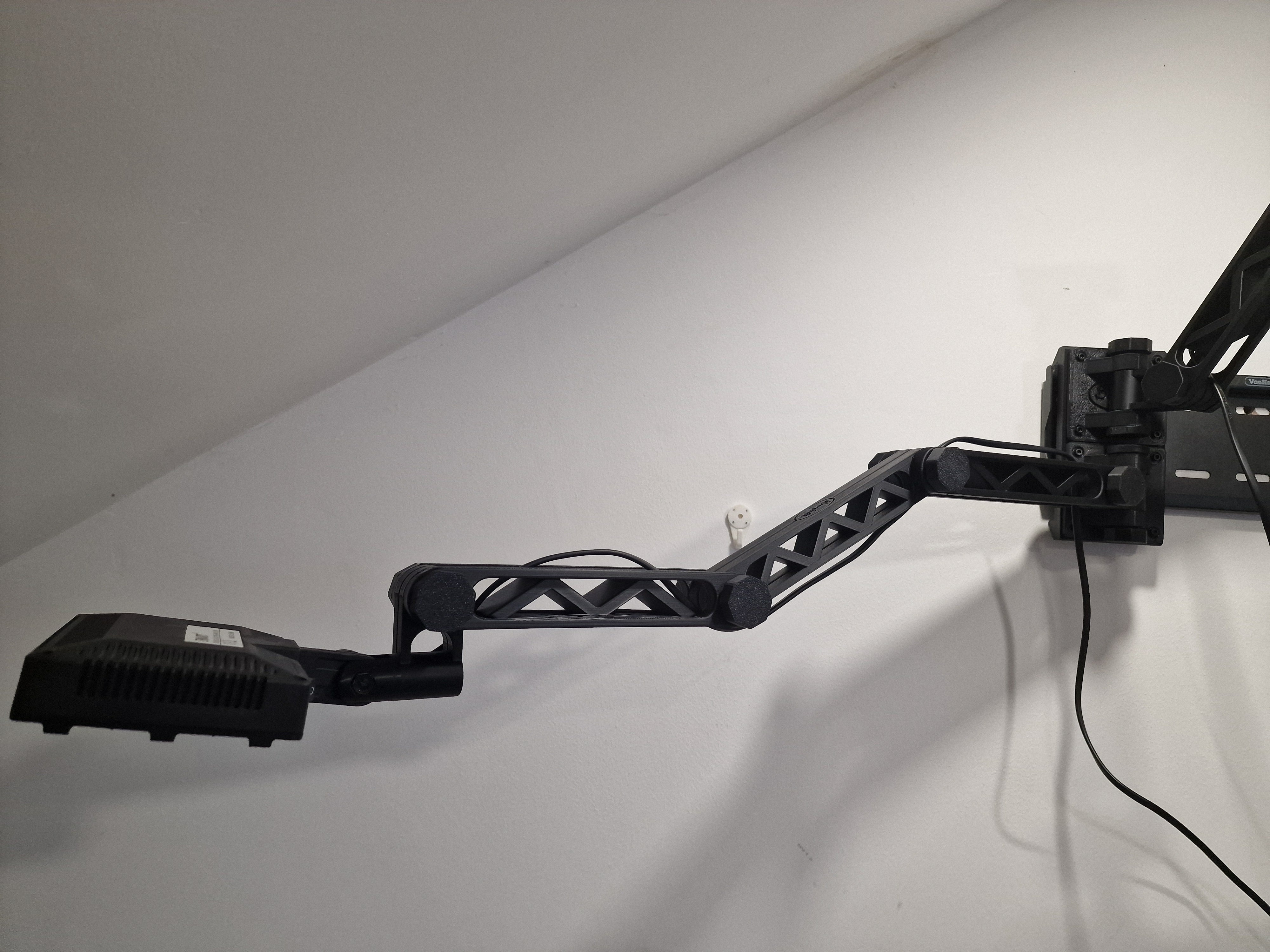 Säädettävä seinäteline, jossa varsi LED-valoille ja TV:lle