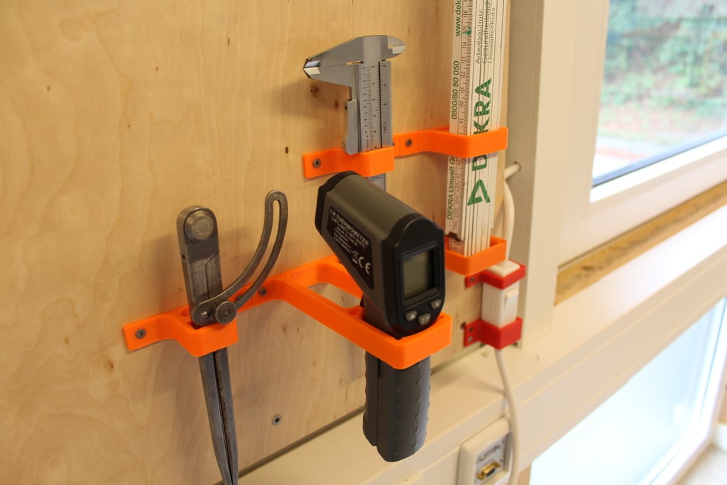 Osana "Ideenreich tool wall" -järjestelmää tämä seinäkiinnike tukee työkalujesi tehokasta järjestämistä sekä työpajoissa, FabLabsissa että makerspaceissa. Järjestetty seinä vähentää hukka-aikaa ja lisää tuottavuutta pitämällä tärkeät työkalut, kuten infrapunalämpömittarisi, selkeästi sijoitettuna.