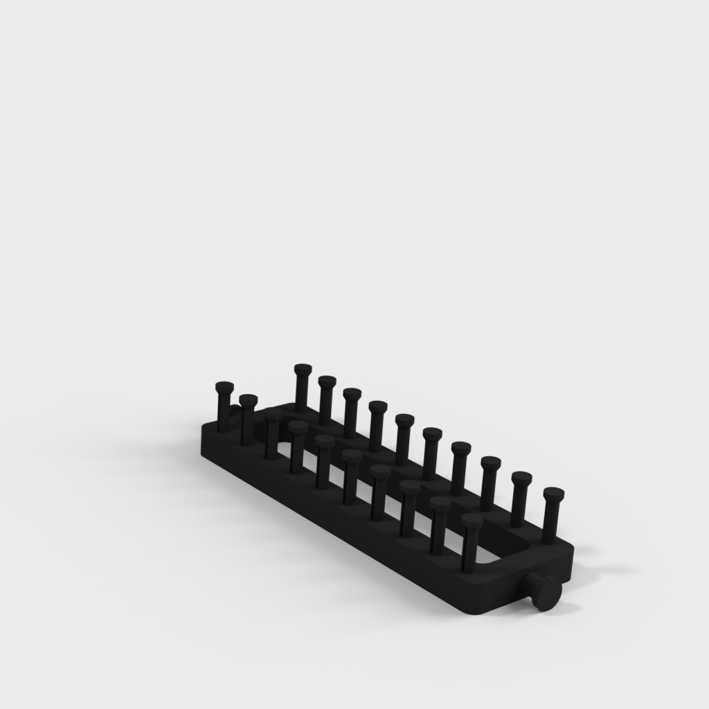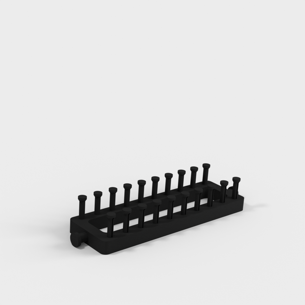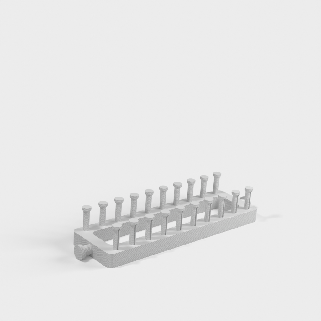 Suorakulmainen neulontalauta, jossa on 10 tappia
