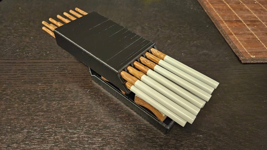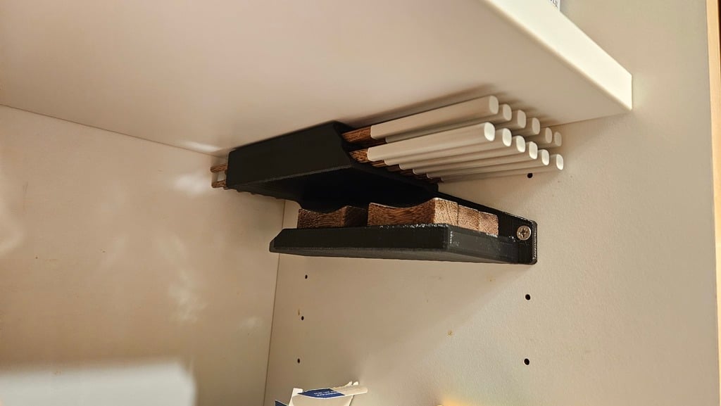 Tämä syömäpuikkoteline tarjoaa käytännöllisen ratkaisun syömäpuikkojen ja syömäpuikkotelineiden järjestämiseen keittiössä tai ruokailutilassa. Se on suunniteltu mahtumaan jopa 12 paria syömäpuikkoja ja 6 syömäpuikkotelinettä, mikä varmistaa, että ne pidetään siististi yhdessä ja helposti saatavilla. Telineessä on valmiit reiät helppoa ruuvikiinnitystä varten, mutta se voidaan kiinnittää myös liimalla, mikä tarjoaa joustavia sijoitusvaihtoehtoja, jotka sopivat erilaisiin sisustuksiin.