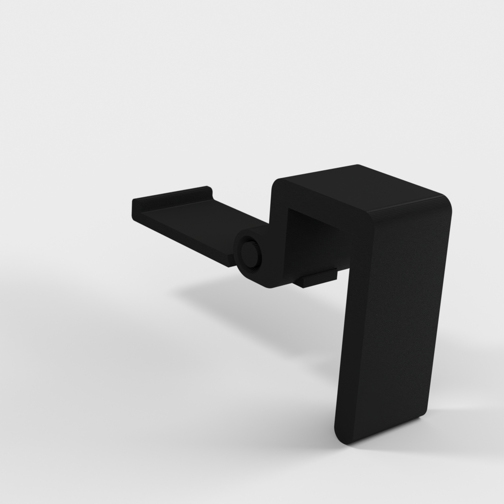 Tämä kokoontaitettava kuuloketeline on käytännöllinen ratkaisu pitämään työpöytäsi tai työtilasi siistinä. Se on suunniteltu sopimaan täydellisesti Ikea Alex -laatikostomoduuleihin, mutta se voidaan helposti asentaa myös muille pinnoille, joiden paksuus on enintään 16 mm, kuten puuhyllyille.