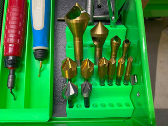Tämä työkalujärjestäjä on suunniteltu tarjoamaan selkeä säilytysratkaisu uppo- ja porrasporillesi. Se auttaa pitämään työkalut yhdessä ja helposti saatavilla, mikä minimoi hukka-ajan ja turhautumisen työpaikalla. Olitpa kokenut käsityöläinen tai omistautunut harrastaja, tämä pidike voi edistää järjestäytyneempää ja tehokkaampaa työnkulkua. Koska monissa porissa on eri mitat, tämä järjestelyratkaisu on tarkoitettu joustavaksi lähtökohdaksi, joka voidaan mukauttaa yksilöllisiin tarpeisiin ja tiettyihin porasarjoihin. Paranna yleiskuvaa ja luo järjestystä työkalukaappiisi tällä käytännöllisellä säilytysyksiköllä.