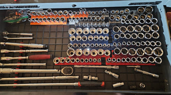 Paranna työkalujesi järjestystä TrackTwist Sokkelholder V2:lla, joka on älykäs ratkaisu, joka on suunniteltu pitämään 1/2 tuuman ja 3/8 tuuman hylsyt turvallisesti ja siististi. Tämä innovatiivinen säilytysjärjestelmä on luotu keskittyen käyttäjäystävällisyyteen ja mukautettavuuteen, mikä tekee siitä ihanteellisen sekä harrastajille että ammattilaisille.