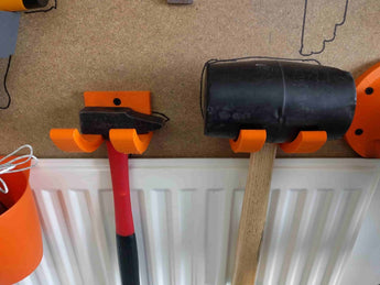 Tämä käytännöllinen työkaluteline on suunniteltu vasaran tai kumivasaran tehokkaaseen säilytykseen, ja se edistää siistiä ja järjestettyä työskentelytilaa. Teline on suunniteltu työkalulle, jonka halkaisija on enintään 90 mm, joten se sopii monenlaisille vasaroille ja nuijille. 30 mm:n aukko varsien välissä varmistaa työkalun vakaan ja turvallisen kiinnityksen, joten se on aina ulottuvillasi.