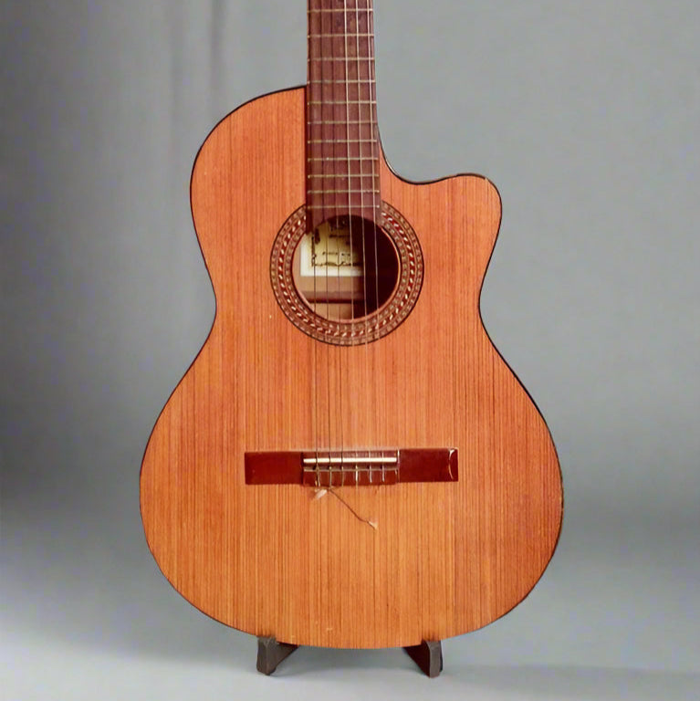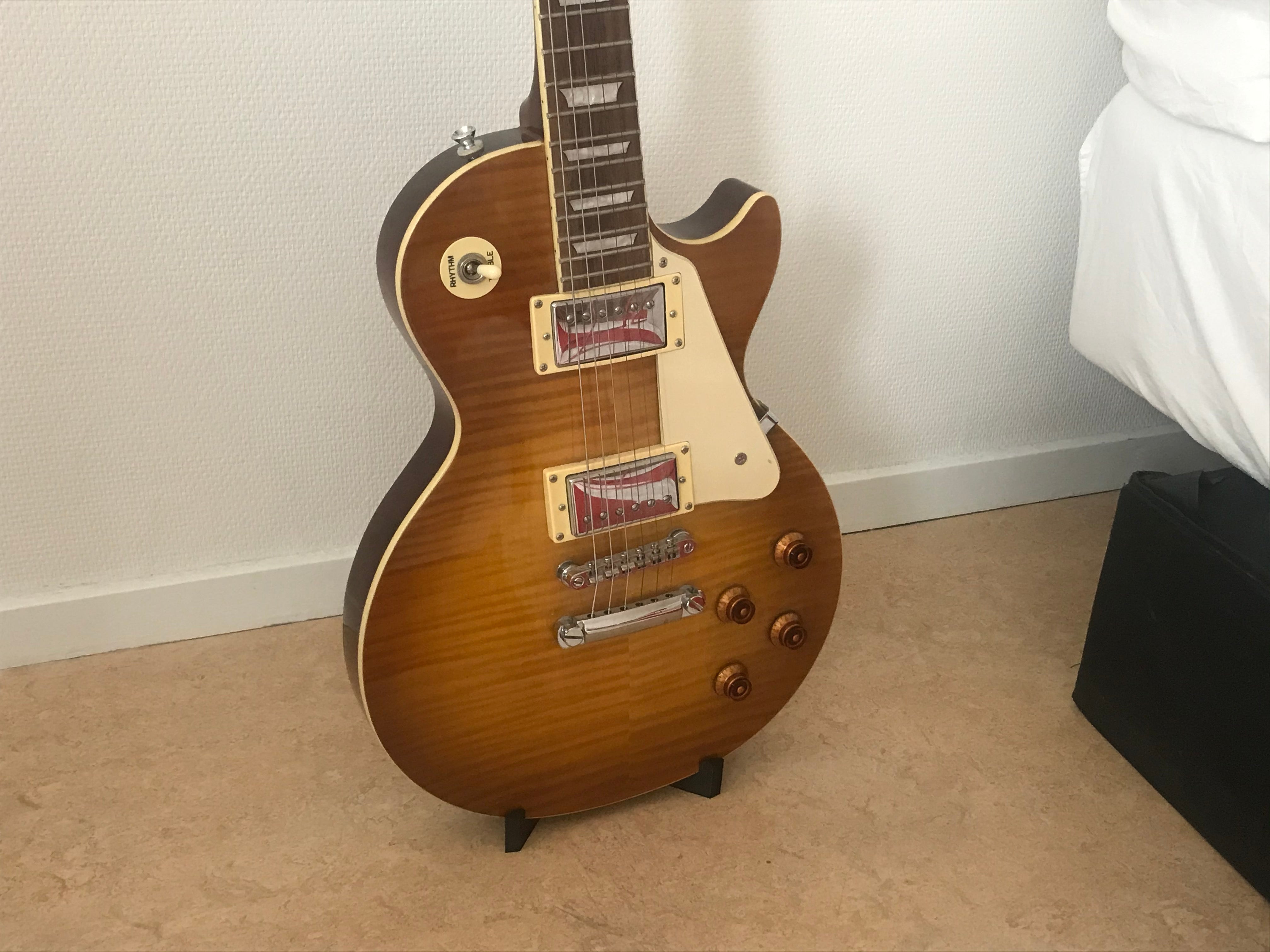 Tämä on akustisen kitaran teline. Tämän telineen avulla voit sijoittaa kitarasi huoneen nurkkaan ja helposti nostaa sen uudelleen.