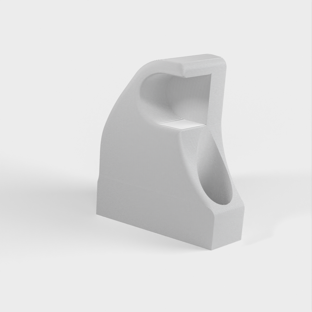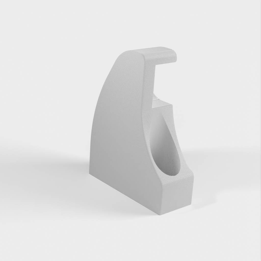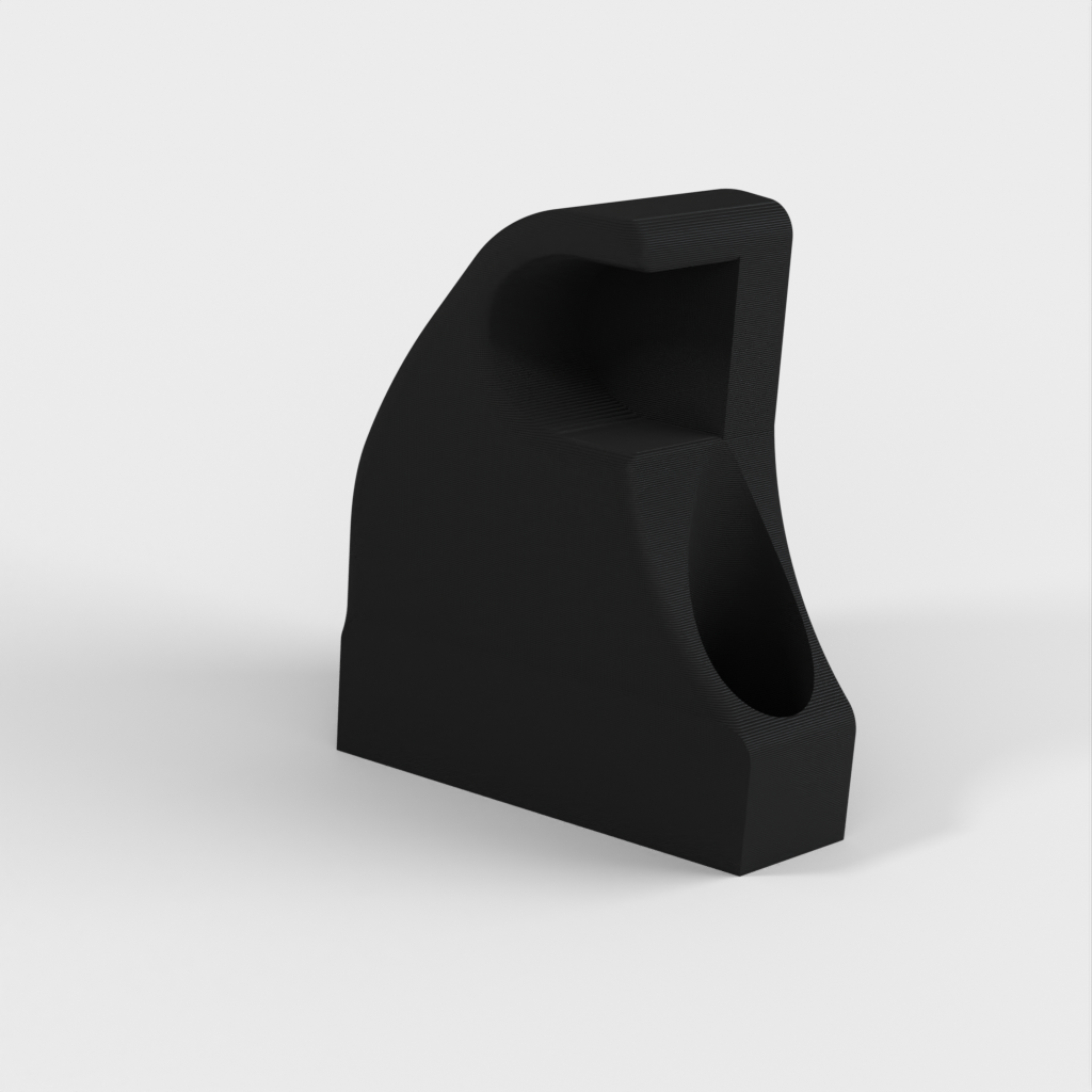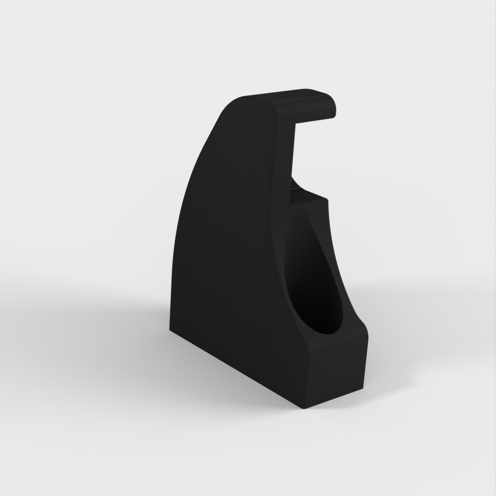 Minimalistinen ripustin sähkökitaralle, jossa kitara roikkuu hihnojen kiinnikkeessä. Ripustin on suunniteltu siten, että hihnan kiinnikkeet ovat 13 mm.