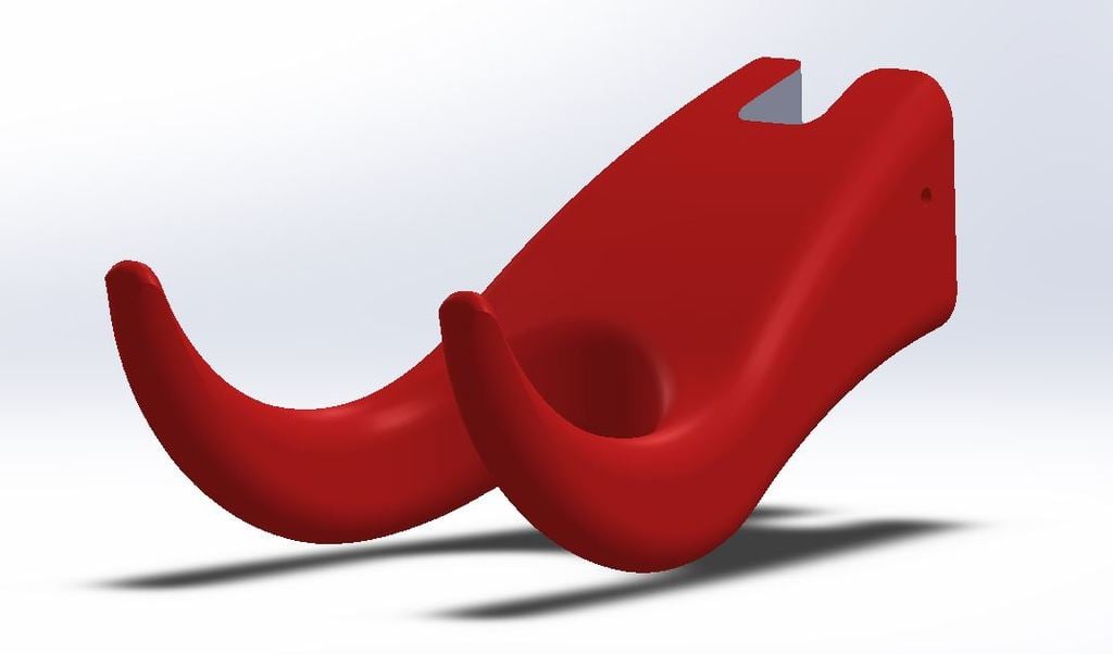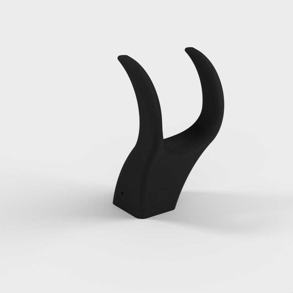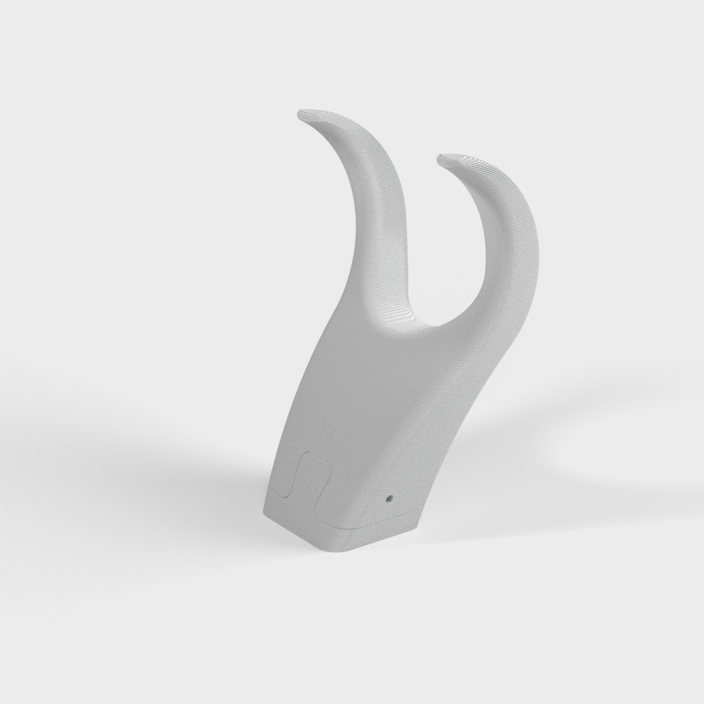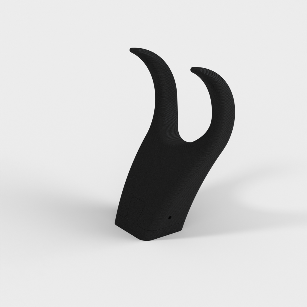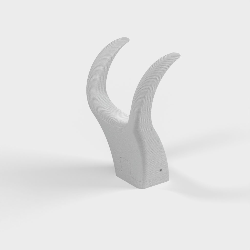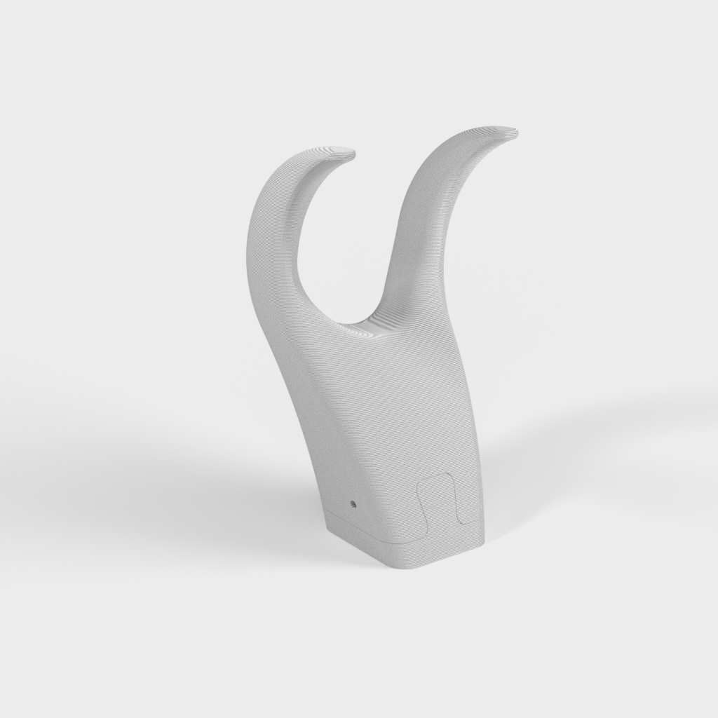 Minimalistinen seinäkiinnike ukulelle. Kaksi osaa voidaan erottaa tulostusta varten. Pääskynpyrstössä on 0,005 tuuman välys, mikä takaa tiukan istuvuuden kahden osan välillä. Takaosa asennetaan seinään kipsilevyruuveilla, joiden kannan halkaisija on 0,32 tuumaa ja pyöristetty upotus (viiste). Pieni reikä kahden elementin sivussa lukitsee ne turvallisesti yhteen pienen tapin avulla, joka on mitoitettu täydellisesti päätynaulaan.