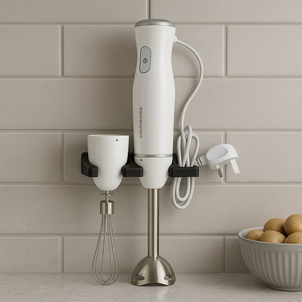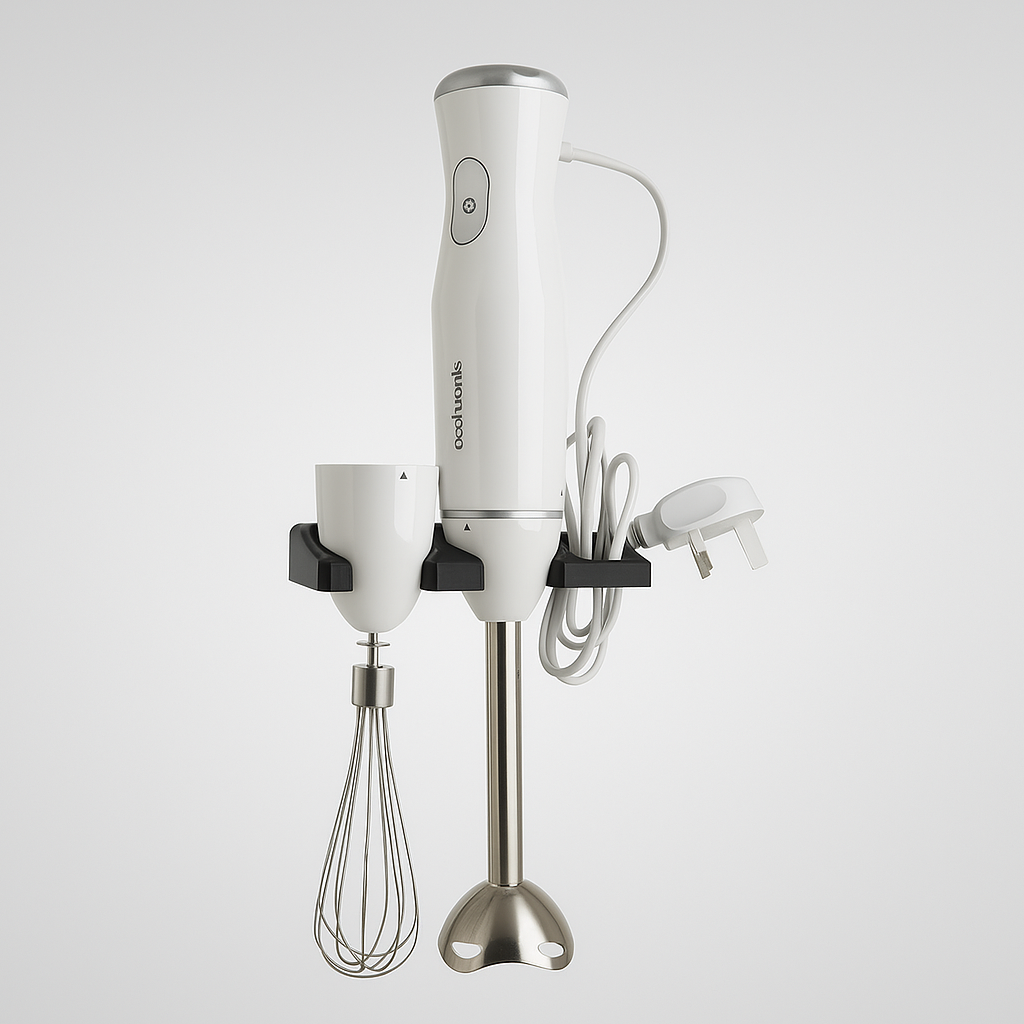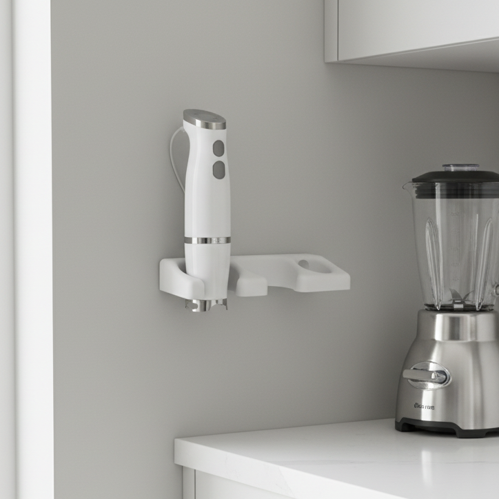 Optimoi keittiötilasi ja pidä se järjestyksessä tällä älykkäällä seinätelineellä sauvasekoittimellesi. Tämä siistin ja toimivan ympäristön luomiseen suunniteltu kiinnike mahdollistaa sauvasekoittimen, sen lisävarusteiden ja johdon säilyttämisen helposti yhdessä paikassa. Näin vapautat arvokasta kaappitilaa ja pidät keittiön työtasot siistinä.