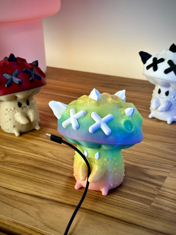 Tämä toiminnallinen sieniteline on ihanteellinen kaapeleiden järjestämiseen työpöydällä. Aavemainen sieni pitää turvallisesti älypuhelimen ja USB-kaapelit, kun niitä ei käytetä. Sienen lakki kätkee sisäänsä älykkään, piilotetun tilan pienten esineiden, kuten paristojen tai paperiliittimien, säilytykseen.