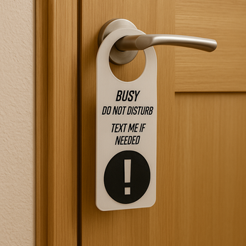 Tämä kyltti on kohtelias tapa kertoa ihmisille, että olet keskittynyt, töissä tai haluat vain olla rauhassa tällä hetkellä. Kyltti onnistuu ilmaisemaan toiveesi saada olla rauhassa tiukalla ja samalla kohteliaalla tavalla, jotta säilytät rauhan ja harmonian.