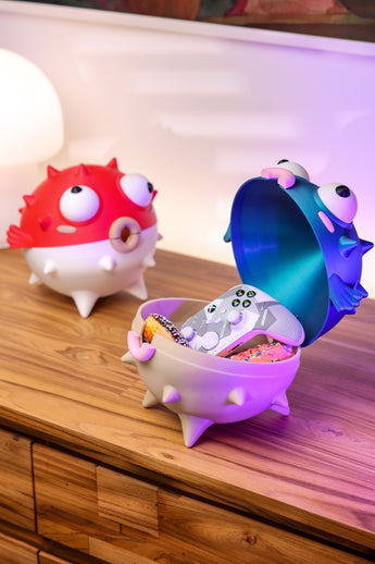 Tämä söpö pallokalamainen säilytyslaatikko auttaa järjestämään työpöytäsi tai hyllysi. Käytä suloista astiaa kynien, pienten tarvikkeiden tai jopa ohjaimen säilytykseen, lisäten tilaan hauskaa koristeellista elementtiä. Ainutlaatuinen muotoilu on viehättävä ratkaisu pitääksesi tavarasi siistinä.