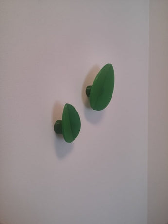 Lehdenmuotoinen seinäkoukku piilokiinnityksellä