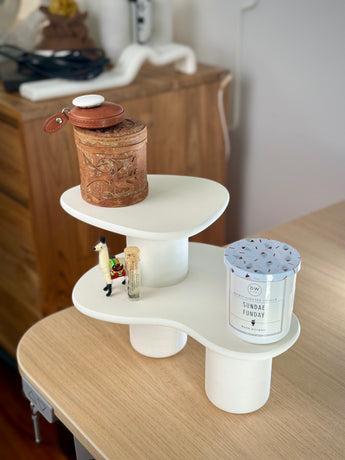 Tämä moderni aaltoileva hylly on ihanteellinen työpöytäsi kokoonpanoon tai kodin sisustukseen. Käytä tätä tyylikästä telineen järjestääksesi pieniä tavaroita tai esitelläksesi koriste-esineitä. Ainutlaatuinen muotoilu ja pyörivä yläosa luovat modernin ja monipuolisen tehostekappaleen kotiisi.