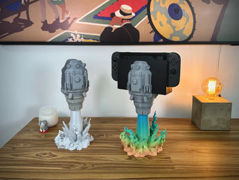 Tämä raketin muotoinen telakka toimii vakaana pidikkeenä Nintendo Switchillesi, yhteensopivana sekä OLED- että klassisten versioiden kanssa. Se integroi konsolin siistiin pelaajien kokoonpanoon. Rakettitelakka varmistaa, että Switchisi seisoo turvallisesti, samalla kun se lisää ainutlaatuisen koristeellisen elementin pelialueellesi.
