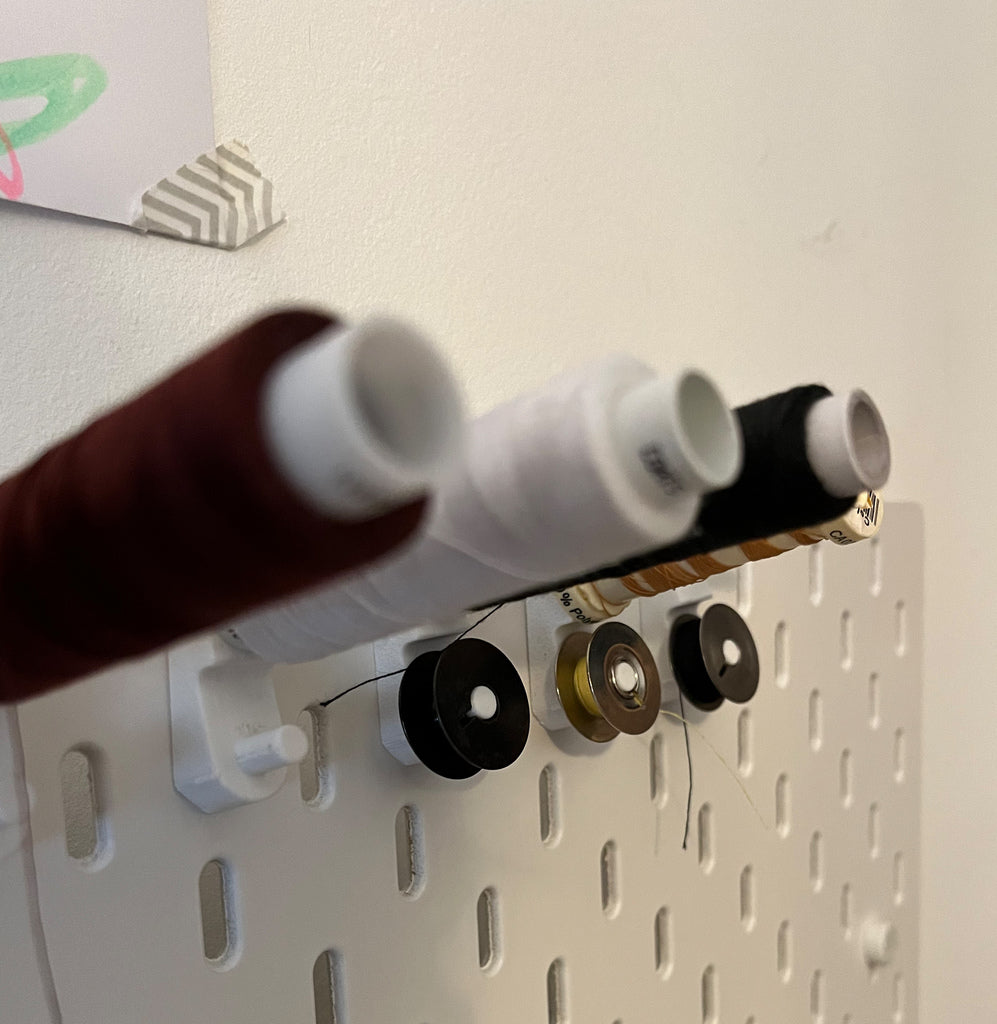 IKEA SKADIS -lankateline on ihanteellinen ratkaisu lankapuolien järjestyksen pitämiseen. Tämän pidikkeen avulla voit helposti järjestää sekä suuria että pieniä lankapuolia, mikä auttaa sinua välttämään värien sekoittamisen, kuten laivastonsinisen ja mustan. Pidike on suunniteltu sopimaan täydellisesti IKEA SKADIS -järjestelmäsi kanssa, mikä helpottaa siistin ja toimivan työskentelytilan luomista käsitöillesi.