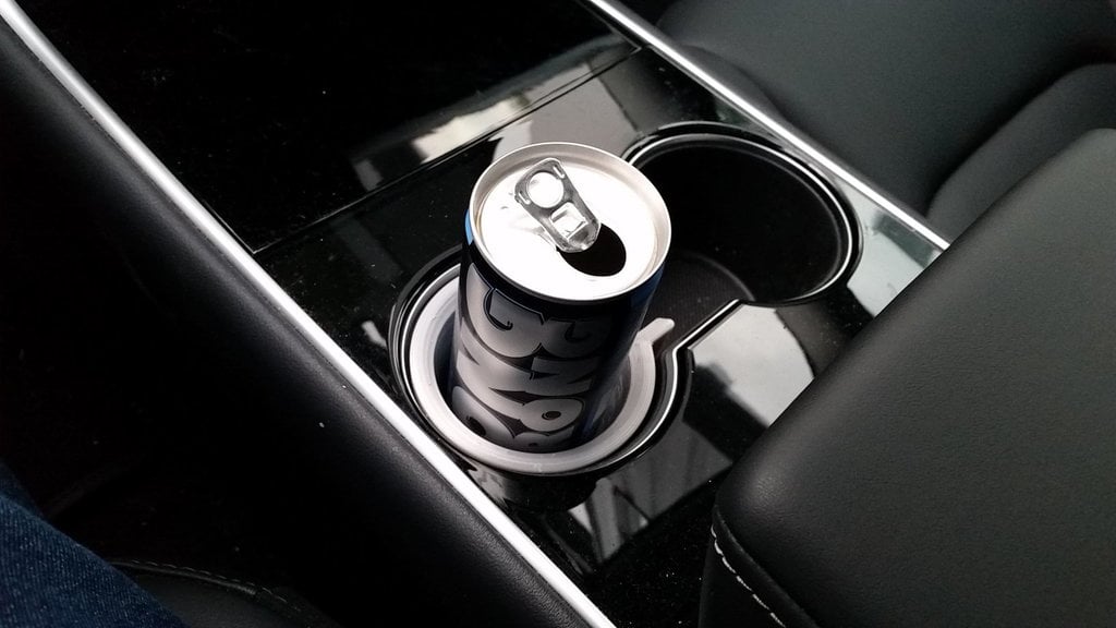 Tämä energiajuomatölkkipidike on suunniteltu erityisesti Tesla Model 3:een. Se sopii sekä 250 ml:n (~53 mm halkaisija) että 330 ml:n (~58 mm halkaisija) energiajuomatölkeille ja pitää ne tukevasti paikallaan, vaikka painat kaasun pohjaan. Suuret nestemäärät voivat kuitenkin valua ja vahingoittaa etuistuinten välistä konsolia, kattoa ja takaistuimia autossasi, jos tölkki on auki ja yli ~1/3 täynnä.