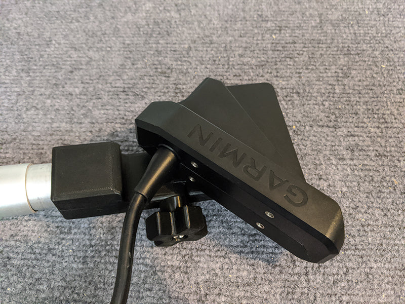 Garmin Livescope -luotaimen anturin pylväskiinnike, jossa on eteenpäin, alaspäin ja perspektiivinäkymä. Tämä anturin pidike on suunniteltu asentamaan Garmin Livescope -luotainanturisi helposti 28 mm:n pylvään päälle (pylväs ei sisälly toimitukseen).
