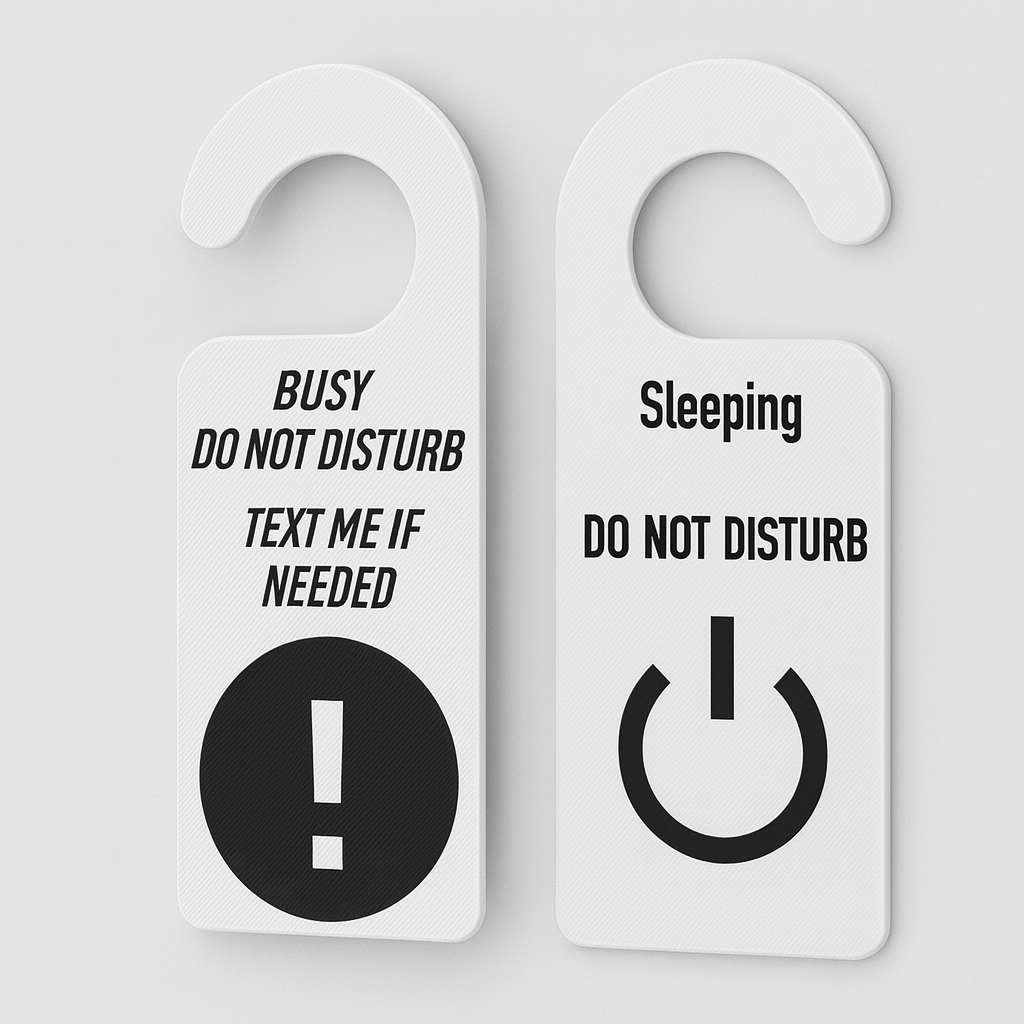 Tämä kyltti on kohtelias tapa kertoa ihmisille, että olet keskittynyt, töissä tai haluat vain olla rauhassa tällä hetkellä. Kyltti onnistuu ilmaisemaan toiveesi saada olla rauhassa tiukalla ja samalla kohteliaalla tavalla, jotta säilytät rauhan ja harmonian.