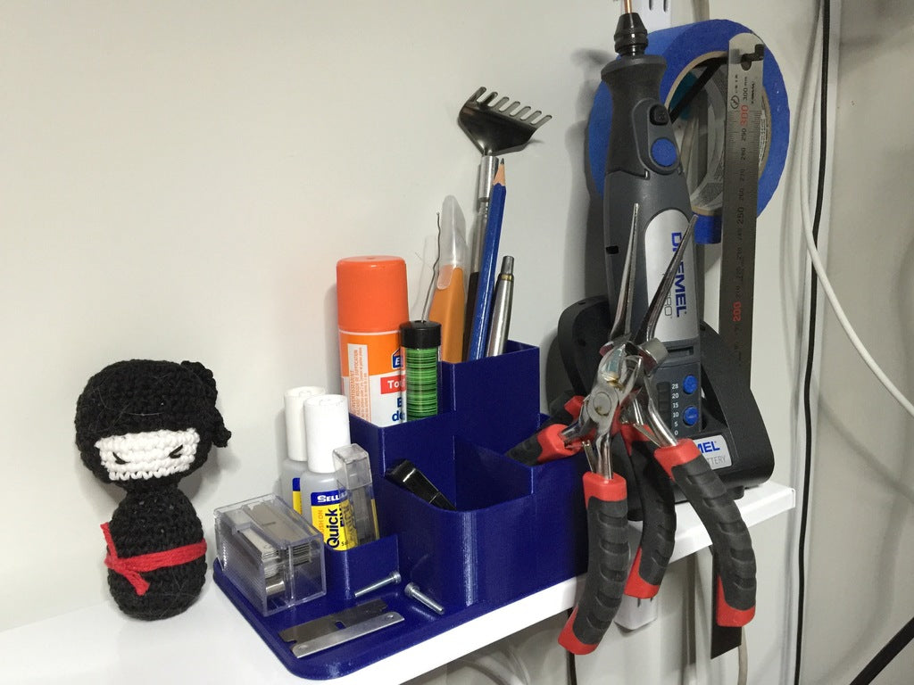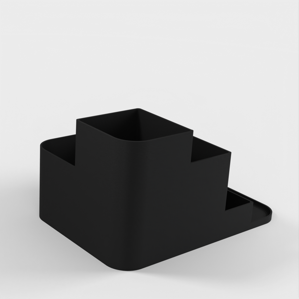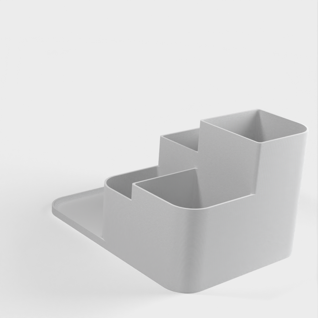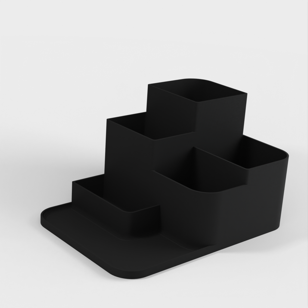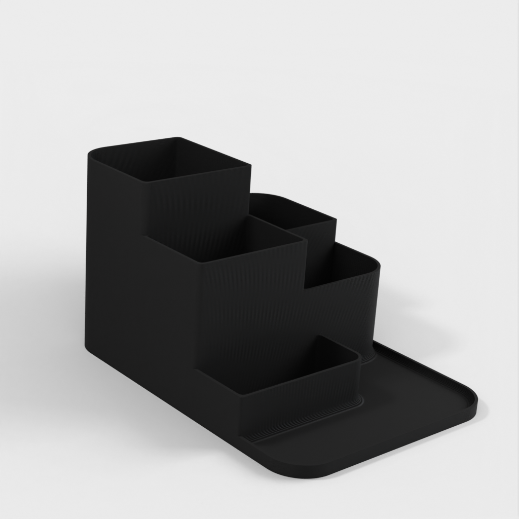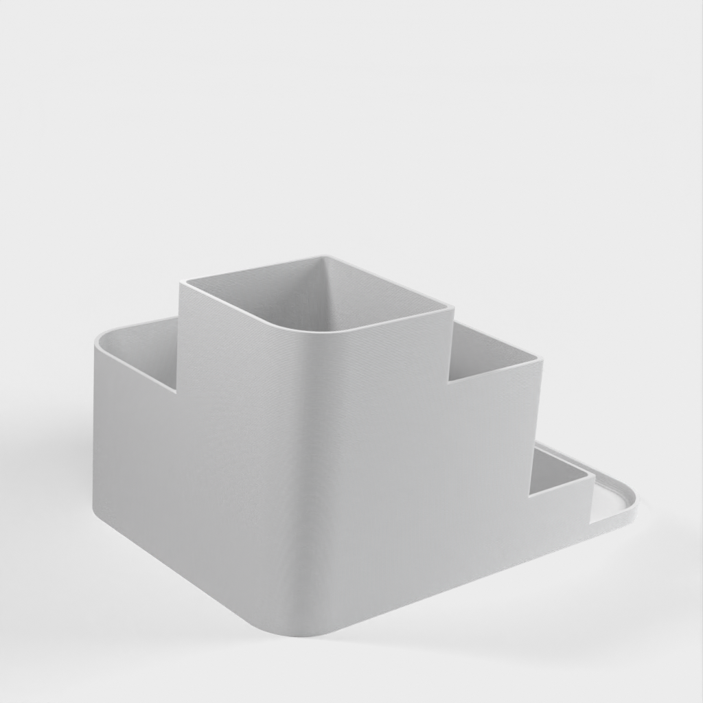Pöytäjärjestäjä, joka on suunniteltu auttamaan sinua pitämään työpöytäsi siistinä ja järjestämään toimistotarvikkeesi tehokkaasti. Tätä tuotetta käytetään kirjoitustarvikkeiden, muistikirjojen, pakkausteipin ja muiden pienten esineiden säilyttämiseen, joita usein löytyy työpöydiltä.