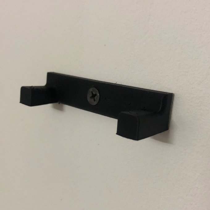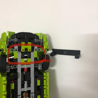 Yksinkertainen 3D-tulostettu seinäkiinnike Lego Lamborghini Huracán -malliin 42161. Kiinnikkeen suunnittelu mahdollistaa helpon ja turvallisen ripustuksen, joten voit esitellä Lego Lamborghini -autoasi seinällä. Kuva näyttää, mihin Lego-malli asetetaan.