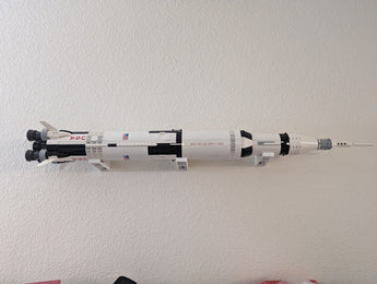 - Designet til at montere din LEGO Saturn V-raketmodel horisontalt på væggen.