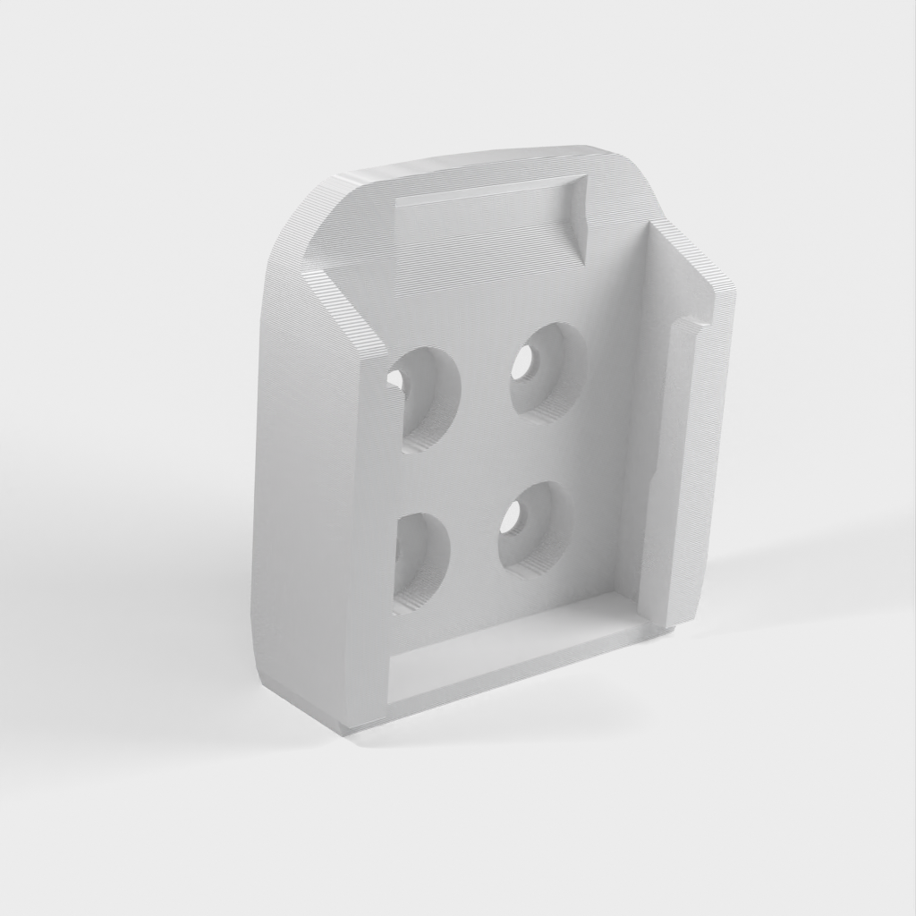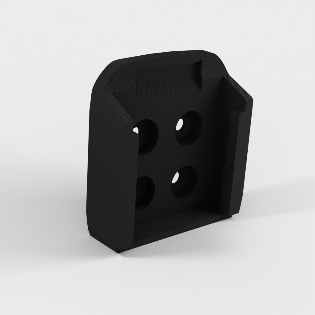 Makitan akkuteline 18 V:n akulle. Pidike voidaan asentaa suoraan seinään 4 ruuvilla tai 1 tuuman reikälevyseinään.