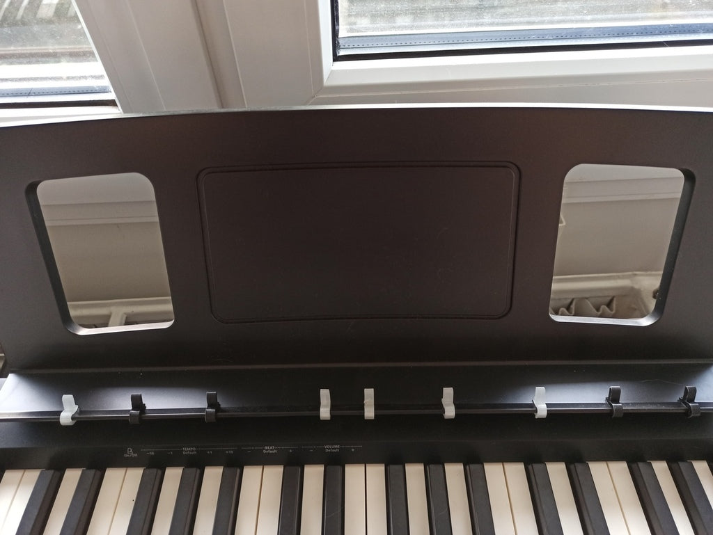 Tukeva ja luotettava pidike, joka on suunniteltu erityisesti Roland FP-10 digitaalisen pianon koteloon. Nuottiteline varmistaa, että nuottisi pysyvät turvallisesti paikoillaan soittaessasi, mikä helpottaa musiikkisi seuraamista ja vaivatonta soittamista. Se on helppo asentaa ja yhteensopiva kaikkien standardiarkkinoiden ja nuottikirjojen kanssa.