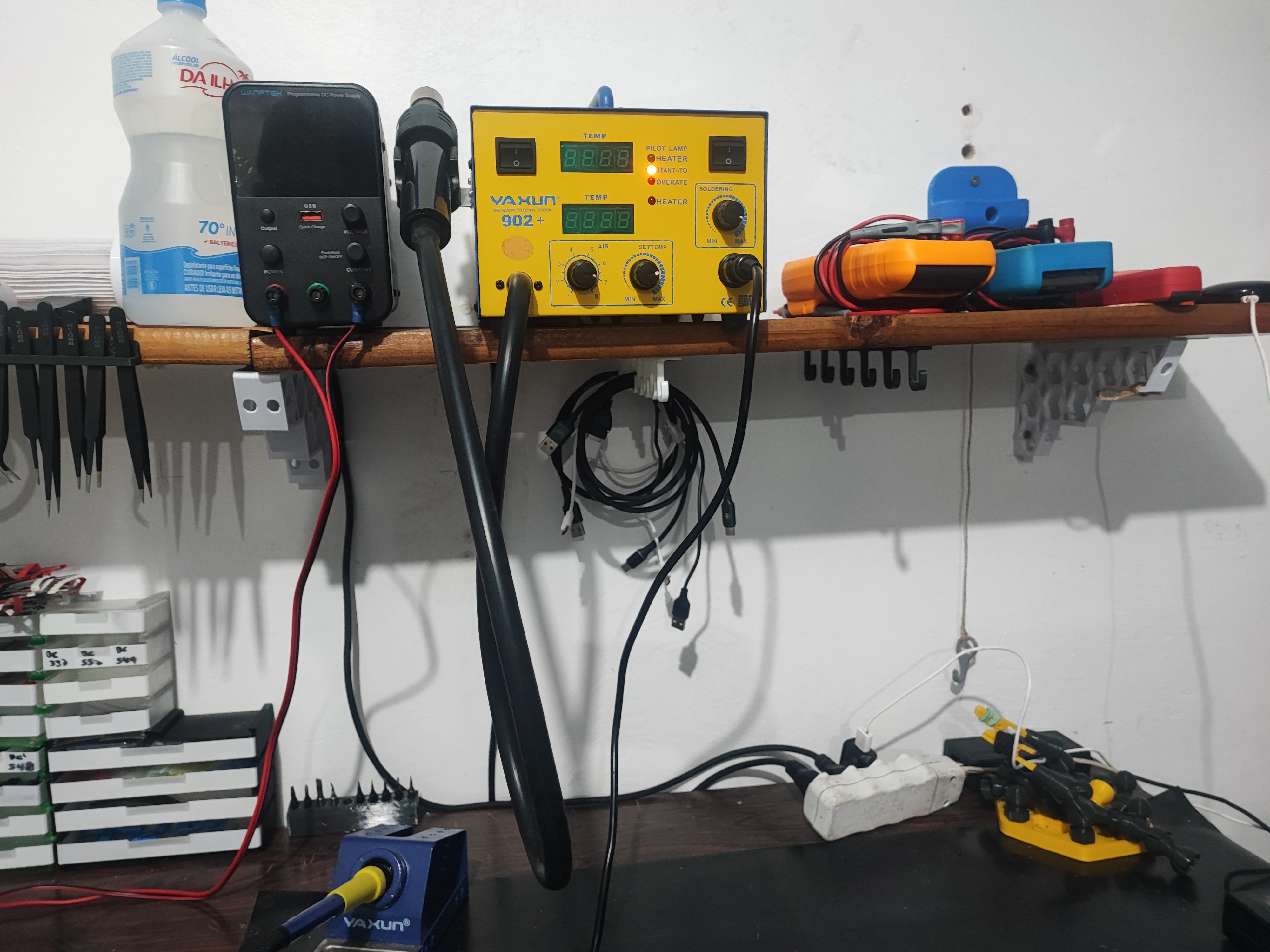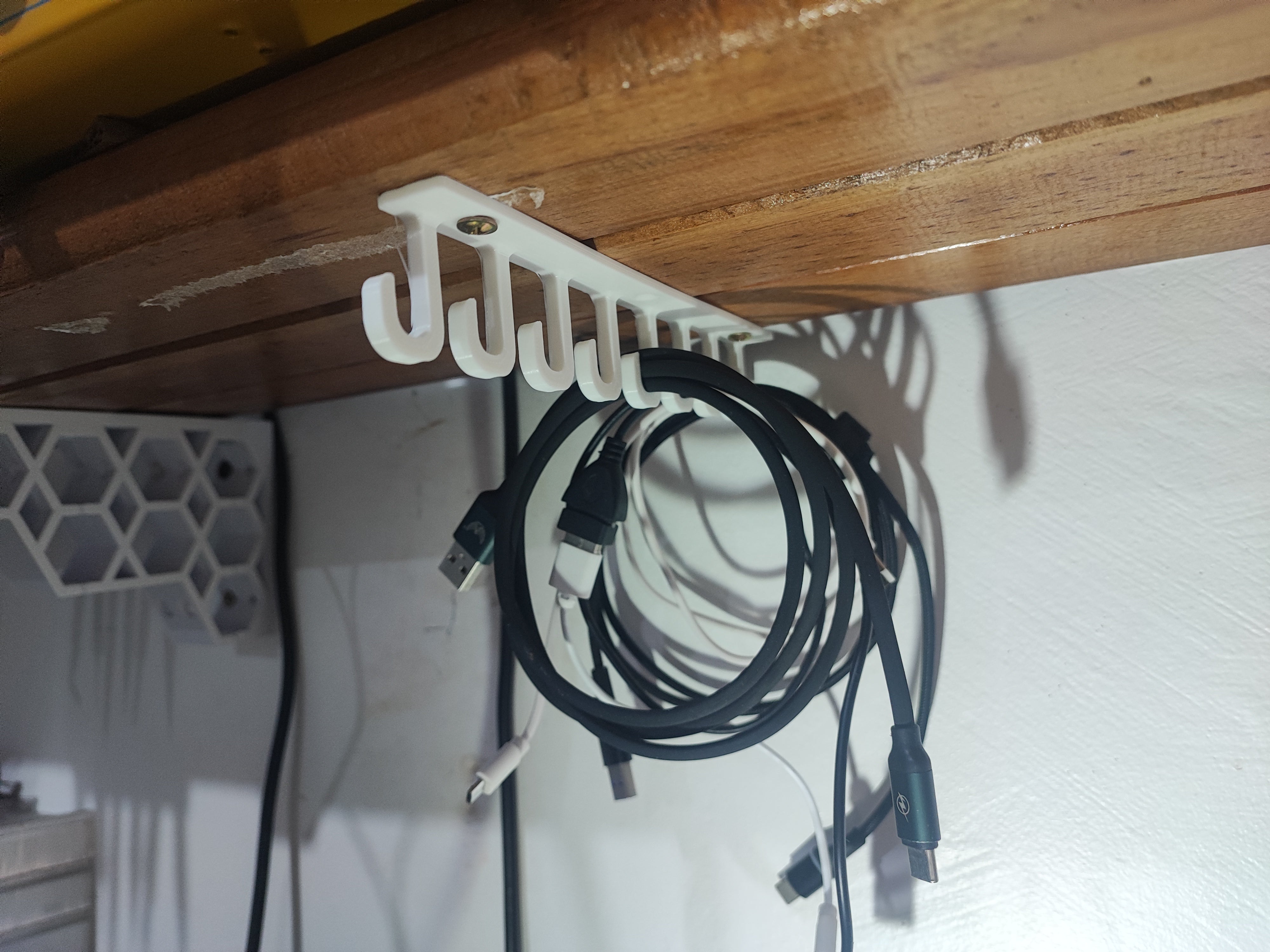 Hyllyn alla oleva kaapelinpidike ja koukku