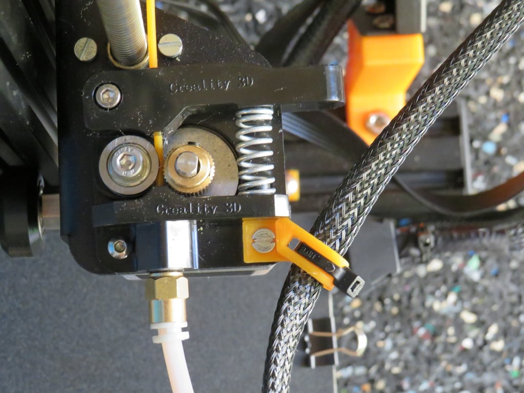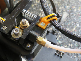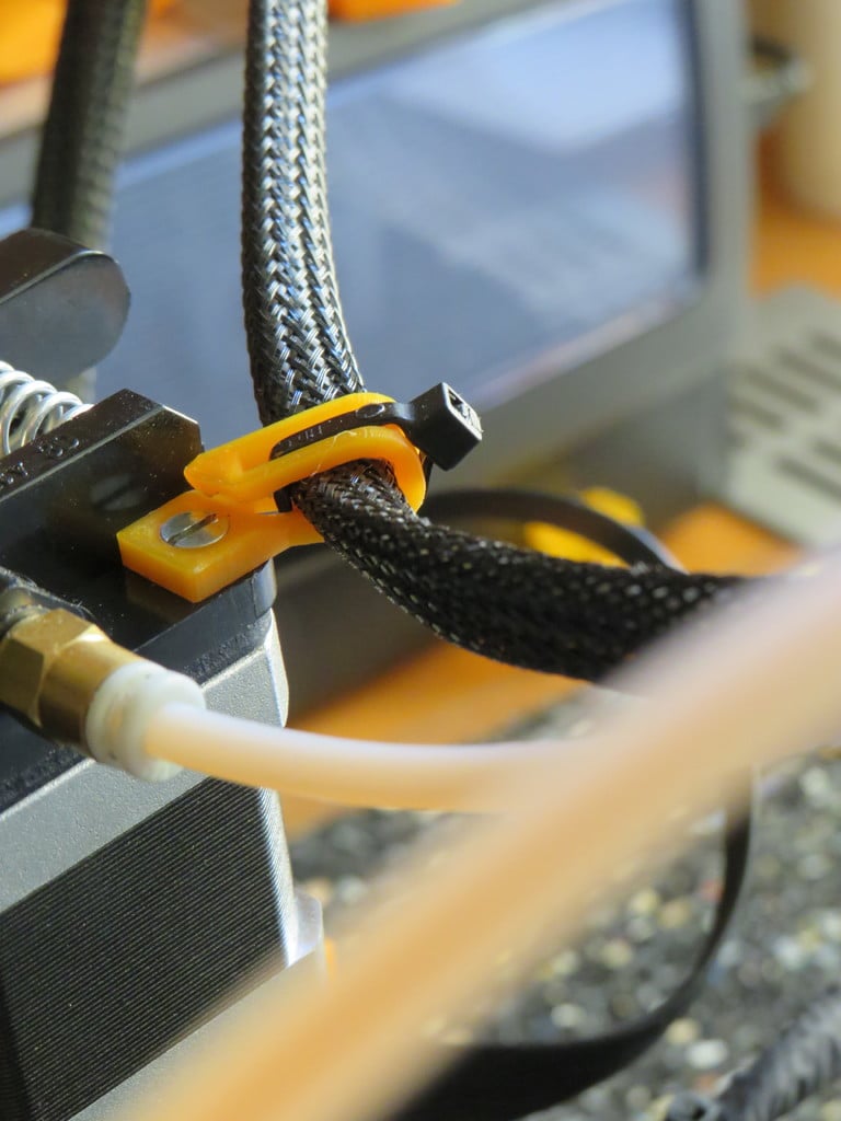 Asennukseen tarvitaan ruuvi, joka on hieman pidempi kuin alkuperäinen, jotta kiinnitys on tukeva. Vaikka se ei ole ehdottoman välttämätöntä, valinnainen nippuside voidaan kiinnittää lisäturvallisuuden vuoksi ja pitää kaapelit siististi paikallaan, mikä edistää 3D-tulostimesi järjestettyä asennusta. Tämä yksinkertainen, mutta tehokas lisävaruste auttaa pitämään työtilasi siistinä ja kaapelisi suojattuina.