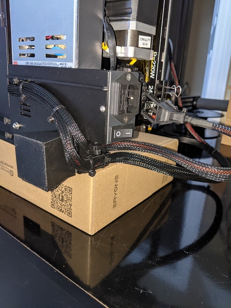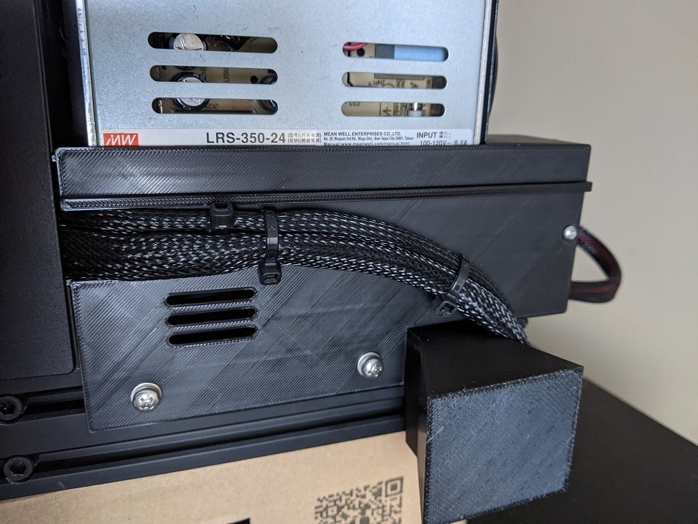 Turvallisen kotelon tarjoamalla tämä komponentti edistää järjestelmällisempää tulostimen asennusta tukien tehokasta **kaapelinhallintaa**. Se toimii suojana **johdon pidikkeenä** PSU:n johdoille ja auttaa estämään liitäntöjen vetämisen tai siirtymisen tulostinta käytettäessä tai siirrettäessä. Tämä voi auttaa ylläpitämään virtalähteen eheyttä ja pidentämään tulostimen sähköjärjestelmän käyttöikää. Kansi integroituu siististi Ender 3 V2:n olemassa olevaan rakenteeseen ja tarjoaa siistin ja toimivan ratkaisun haittaamatta tulostimen suorituskykyä.