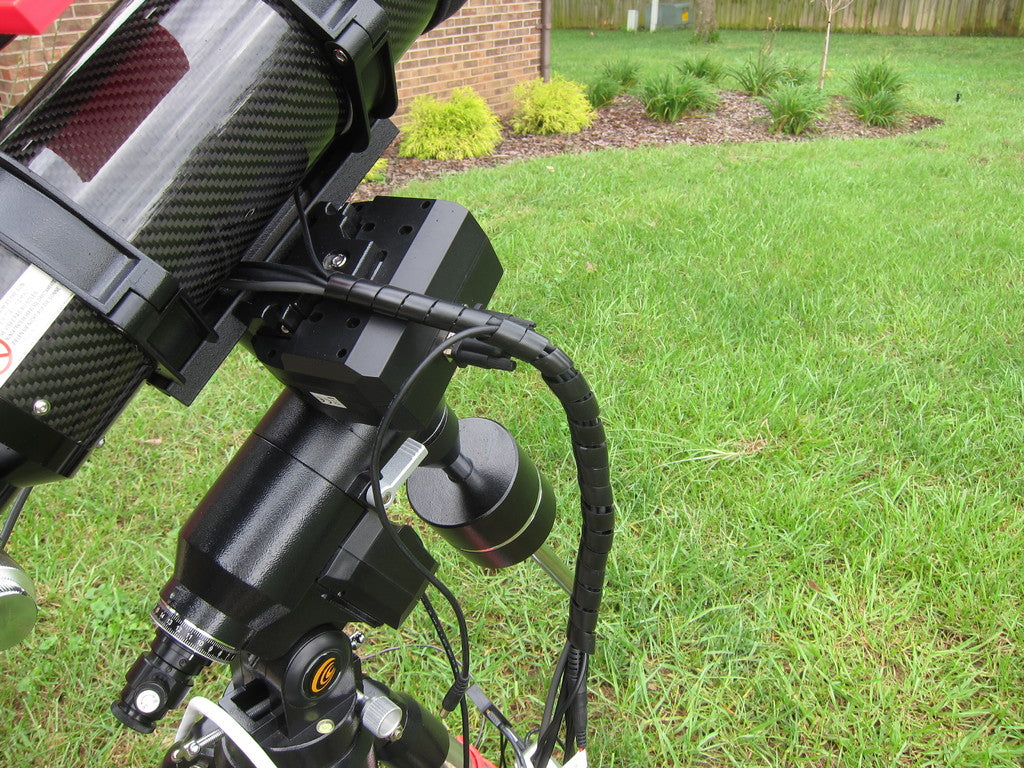 Tämä kiinnike on suunniteltu tarjoamaan tehokas kaapelinhallinta Exos-2-teleskooppiasennuksen jalustan jaloissa. Se toimii tukevana kaapelinpidikkeenä, joka auttaa pitämään kaapelit PMC-Eight-ohjauskotelosta asennukseen. Tämä minimoi kaapeleiden tarttumisen tai sotkeutumisen riskin, kun teleskooppi pyörii, mikä voi estää moottoreita pysähtymästä ja mahdollisesti vahingoittamasta laitteita. Pääohjauskaapeleiden lisäksi tätä johtoklipsiä voidaan käyttää myös lämpöjohtojen ja astrofotografiakameroiden kaapeleiden pitämiseen turvallisesti paikallaan, mikä edistää järjestelmällisempää ja ongelmattomampaa havainnointijaksoa.