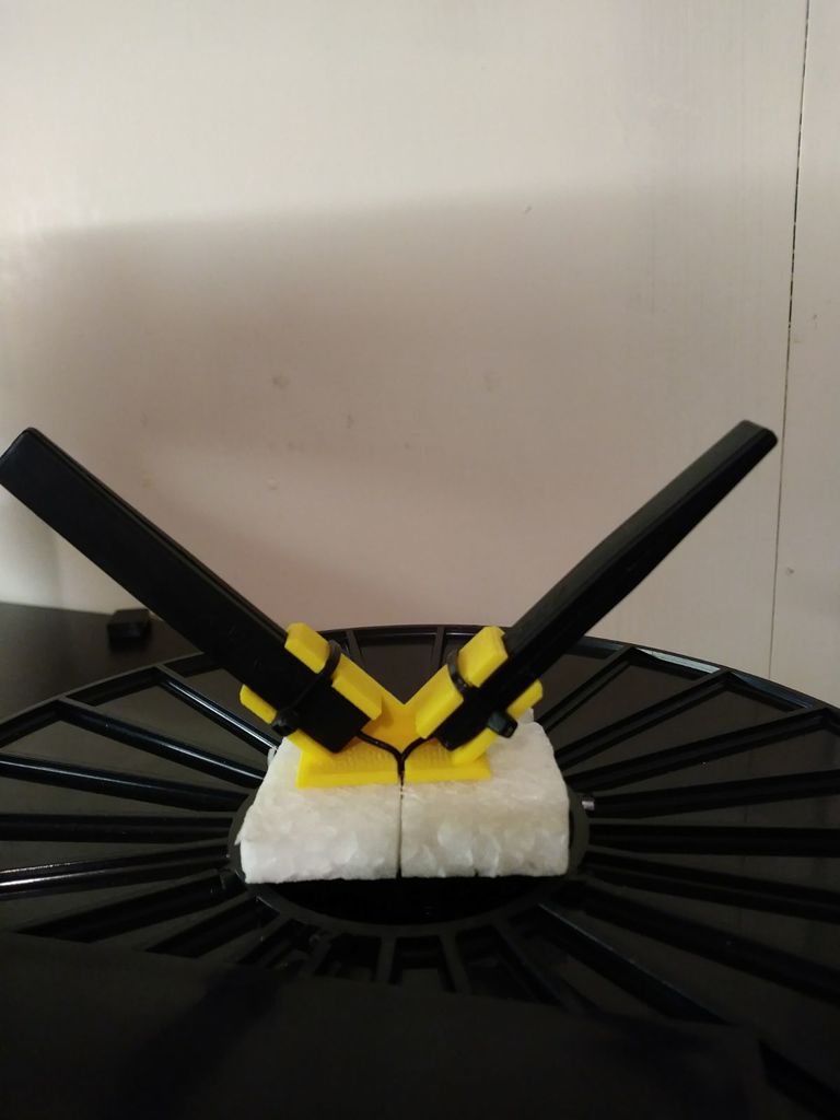 Asennus on suoraviivaista, koska pidike voidaan helposti kiinnittää lentokoneen runkoon kuumaliimalla, tarranauhalla tai vahvalla kaksipuolisella teipillä. Erityinen ominaisuus on sisäänrakennettu ura, joka sijaitsee aivan antennin "korvien" alla ja mahdollistaa huomaamattoman kaapeloinnin. Tämä tarkoittaa, että johdot voidaan upottaa saumattomasti vaahtomuovikoneen runkoon, mikä johtaa erittäin siistiin asennukseen ja virtaviivaisempaan profiiliin.