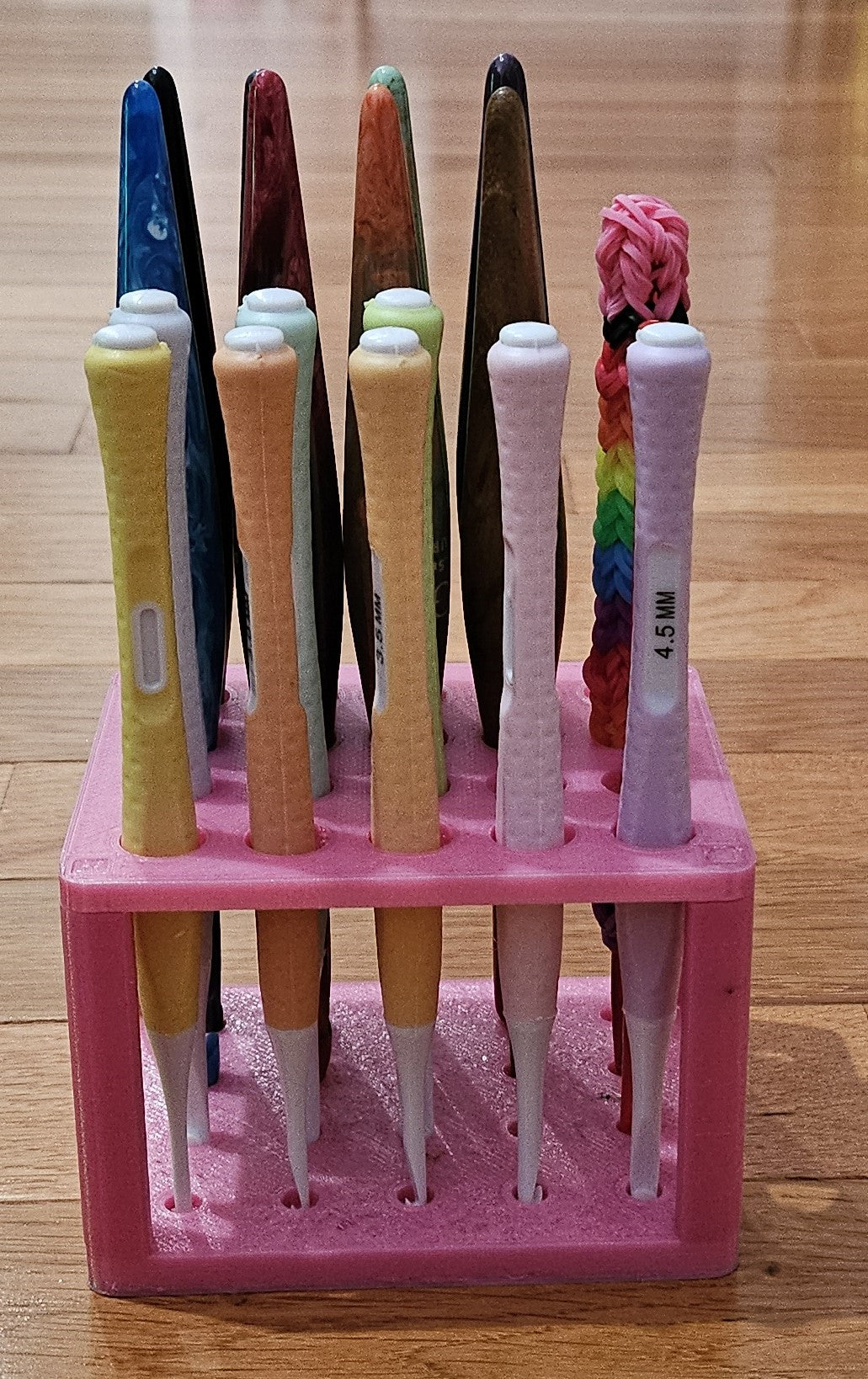 Teline on ihanteellinen sekä aloittelijoille että kokeneille virkkaajille, jotka haluavat pitää välineensä järjestyksessä ja helposti saatavilla. Olitpa sitten kotona tai liikenteessä, tämä virkkuukoukkuteline antaa sinulle mahdollisuuden pitää välineesi käden ulottuvilla, valmiina käyttöön, kun luovuus iskee.