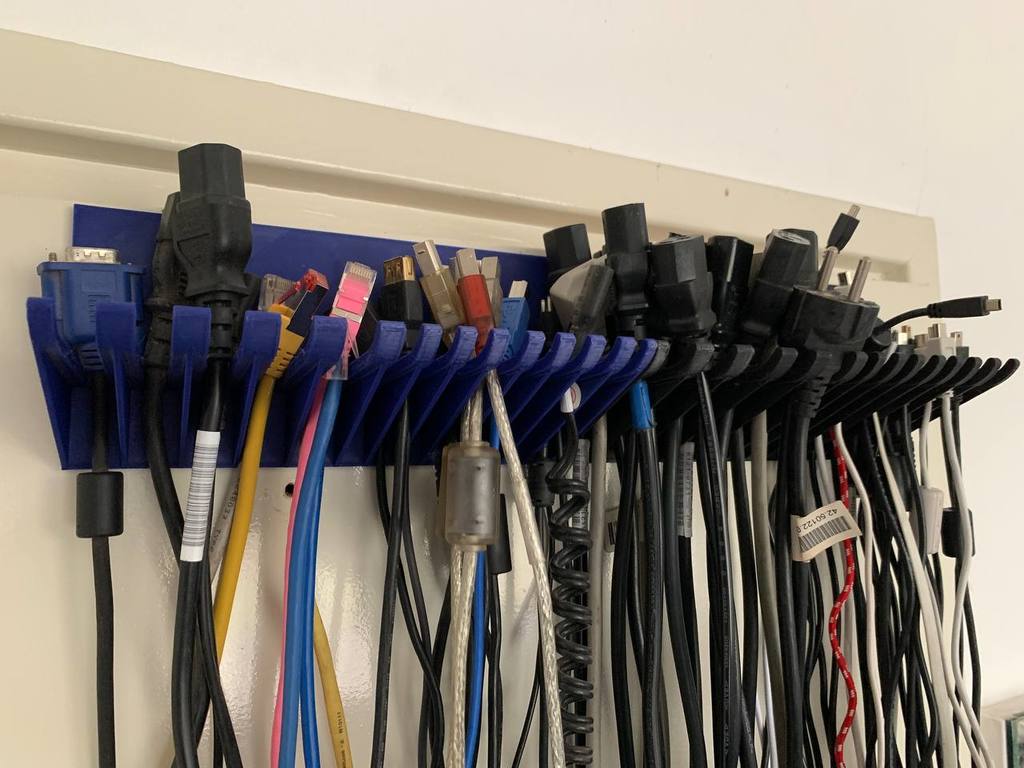 Suunnittelu sisältää kevyen taaksepäin suuntautuvan kaltevuuden ja hienon ylöspäin suuntautuvan kaaren päässä, mikä varmistaa, että kaapelit pysyvät turvallisesti paikallaan. Etuosan raot on suunniteltu hieman leveämmiksi, mikä tekee kaapeleiden asettamisesta helppoa ja vaivatonta, kunnes ne ovat tiukasti kiinni. Pysyvää ja vakaata ratkaisua varten kaapelinpidikkeessä on reiät M4-ruuveille, mikä tekee seinäasennuksesta yksinkertaisen ja tukevan.