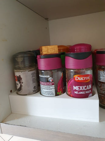 Tämä mausteiden järjestäjä on suunniteltu luomaan järjestystä keittiöön. Se tarjoaa jäsennellyn mausteiden säilytyksen, mikä helpottaa tarvittavien ainesosien löytämistä ruoanlaiton aikana. Keräämällä mausteesi yhteen paikkaan tämä ratkaisu voi auttaa optimoimaan tilan kaapeissasi tai keittiön työtasolla ja luomaan siten siistimmän ja toimivamman ympäristön. Tehokas maustesäilytys auttaa tekemään ruoanlaitosta selkeämpää ja miellyttävämpää.