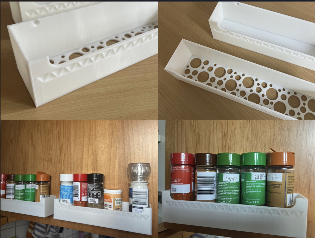 Tämä maustehyllyn järjestäjä on suunniteltu optimoimaan mausteiden säilytystä keittiössä. Se voidaan helposti asentaa keittiön oven sisäpuolelle, mikä vapauttaa arvokasta tilaa hyllyillä ja kaapeissa. Järjestäjä tarjoaa kaksi erilaista pohjavaihtoehtoa: toisen, jossa on reiät, jotka mahdollistavat ilmankierron tietyille mausteille, ja kiinteän pohjan yleisempää maustesäilytystä varten. Tämä antaa sinulle joustavuuden järjestää maustevalikoimasi hallitusti, jotta ne ovat helposti saatavilla ruoanlaiton aikana. Käytännöllinen ratkaisu, joka edistää järjestäytyneempää keittiöympäristöä ja tehokasta maustesäilytystä.