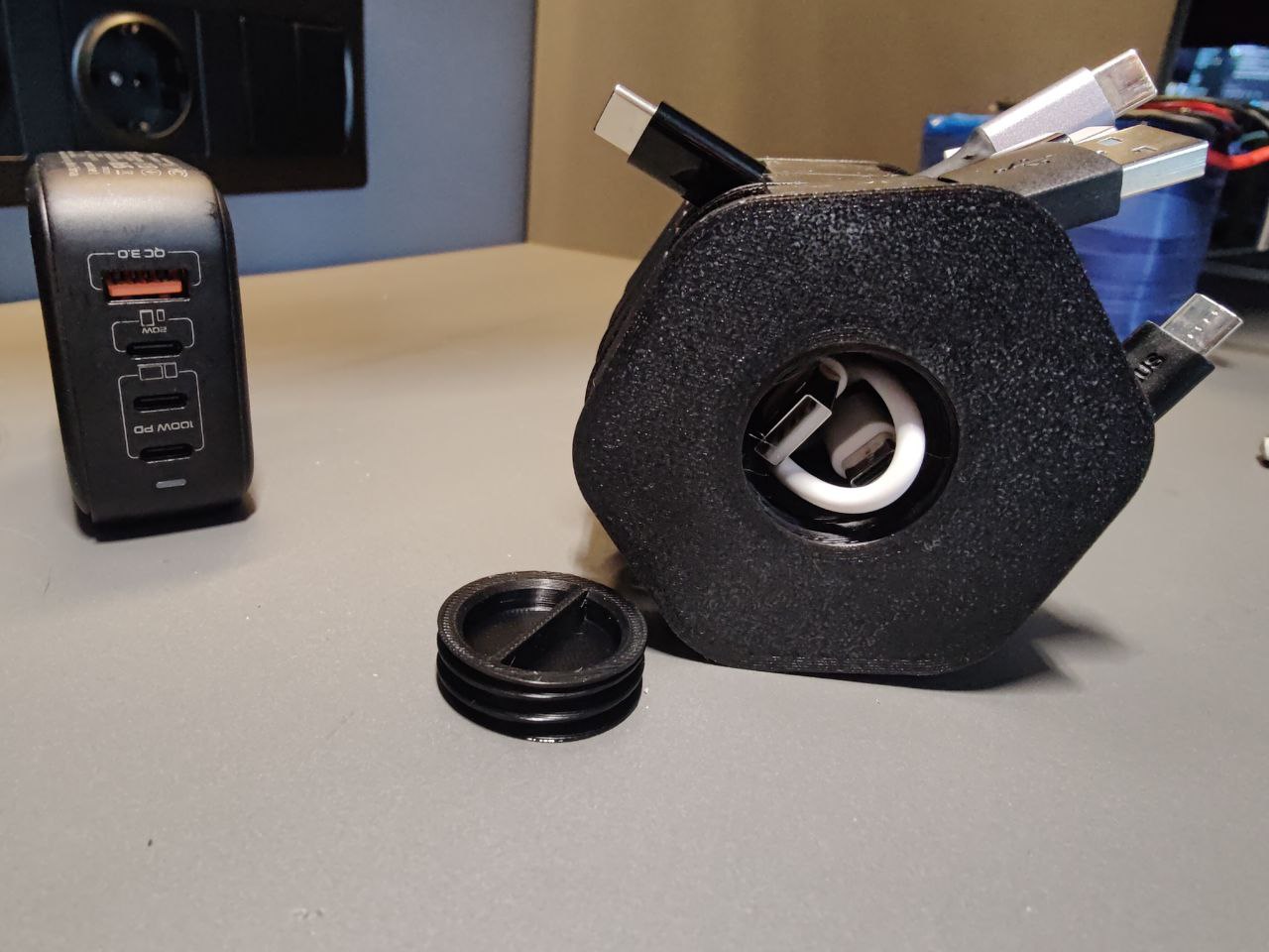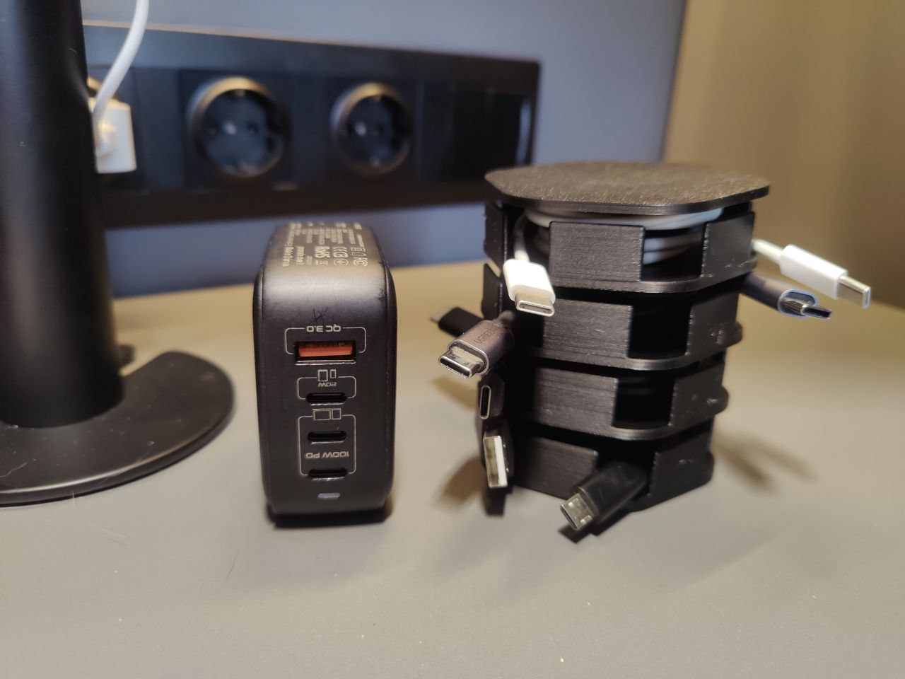 Koetko usein sotkeutuneita latauskaapeleita työpöydälläsi tai laatikossasi? Tämä modulaarinen latauskaapeleiden pidike on suunniteltu järjestämään kaapelit tehokkaasti ja luomaan siistimpi ympäristö. Tässä kaapelitelineessä on tilaa jopa 2 metrin USB-C-kaapelille, jonka halkaisija on 3,7 mm, ja se tarjoaa käytännöllisen ratkaisun latauskaapeleiden hallintaan.