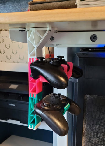 Optimoi työ- tai peliympäristösi tällä modulaarisella ohjainpidikkeellä, joka on suunniteltu huomaamattomaan asennukseen työpöydän alle. Tämä innovatiivinen ratkaisu vapauttaa arvokasta tilaa pöydältä ja pitää ohjaimesi järjestyksessä ja helposti saatavilla, kun tarvitset sitä. Pidike on täysin yhteensopiva alkuperäisen telineen suunnittelun olemassa olevien ohjaintelineiden sekä suosittujen remixien kanssa, mikä varmistaa saumattoman integroinnin nykyiseen kokoonpanoosi. Se sopii erityisen hyvin Xbox 360 -ohjainten säilytykseen.
