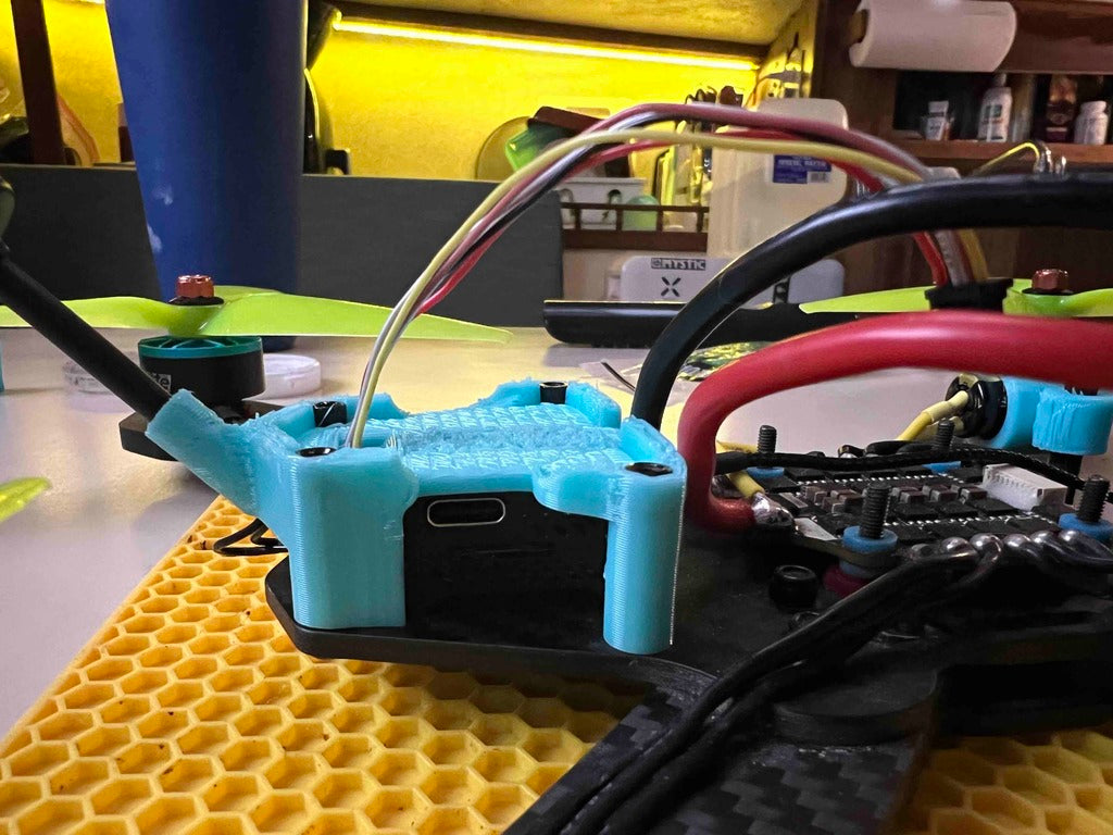 - Turvallinen kiinnitys DJI 03 Air Unit -yksikölle Project 399 Practice Rig -laitteessa.
