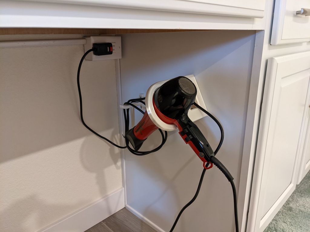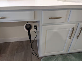 Tämä käytännöllinen hiustenkuivaajan pidike on suunniteltu asennettavaksi kylpyhuoneen kaapin sivulle. Se tarjoaa tilaa säästävän ratkaisun, joka auttaa pitämään kylpyhuoneesi järjestyksessä ja siistinä, sillä hiustenkuivaajallasi on oma paikka. Integroidun kaapelikoukun ansiosta pidike toimii myös johtopidikkeenä, joka varmistaa, että virtajohto putoaa siististi paikoilleen käytön jälkeen ja minimoi sotkeutumisen. Tämä tarjoaa helpon ja selkeän säilytyksen, joten hiustenkuivaajasi on aina käden ulottuvilla, kun tarvitset sitä.