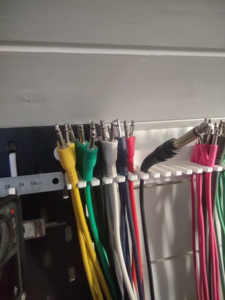 Tämä käytännöllinen Skadis Eurorack -kaapeliteline on suunniteltu luomaan järjestystä musiikkistudioosi tai työtilaasi. Se on helppo integroida IKEA Skadis -järjestelmään ja tarjoaa tehokkaan ratkaisun Eurorack-kaapeleiden säilytykseen. Tällä älykkäällä johdonpidikkeellä voit helposti estää kaapeleiden sotkeutumisen ja sotkun, mikä varmistaa, että Eurorack-kaapelisi ovat aina järjestyksessä ja helposti saatavilla. Optimoi kaapelinhallintasi ja saavuta virtaviivaisempi ja selkeämpi asennus.