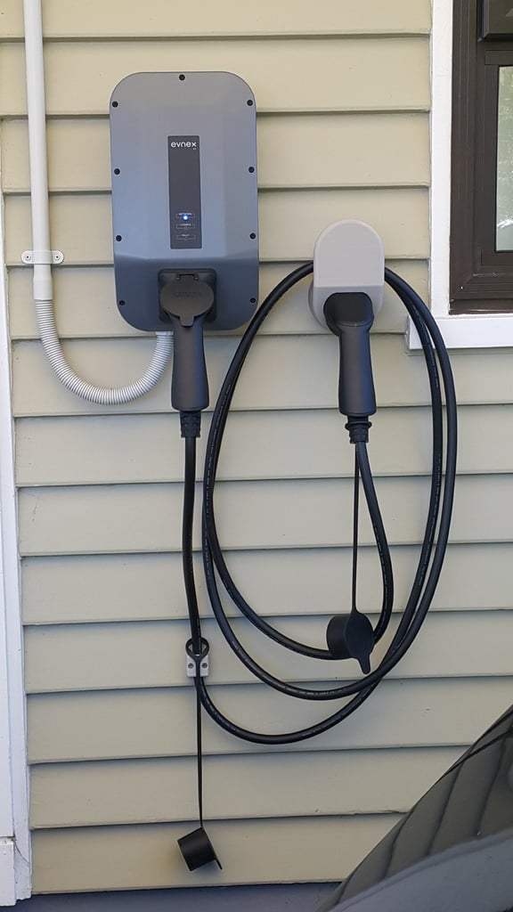 Sisäänrakennettu pistokekulma on myös sovitettu Evnex-seinälatureihin, mikä varmistaa täydellisen istuvuuden ja harmonisen ulkonäön olemassa olevan asennuksesi kanssa. Tämä johtotelinejärjestelmä edistää sähköautosi siistiä ja toimivaa latausaluetta.