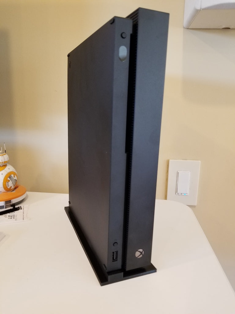 Keskeinen ominaisuus on sisäänrakennettu ilmarako, joka on luotu optimoimaan ilmankierron Xbox One X:n ympärillä. Tämä auttaa ylläpitämään ihanteellisen käyttölämpötilan jopa pitkien peliistuntojen aikana ja edistää konsolin suorituskykyä ja käyttöikää. Koska olennainen Xbox One -lisävaruste, jalusta on rakennettu kahdesta osasta