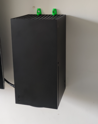 - Xbox Series X:lle erityisesti suunniteltu mittatilaustyönä tehty seinäteline.
