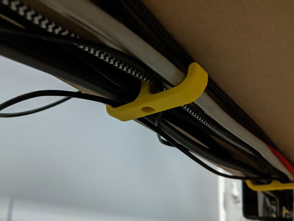 Tämä yksinkertainen kaapelinpidike on suunniteltu järjestämään kaapelit tehokkaasti työpöydän alla. Se tarjoaa huomaamattoman ja käytännöllisen tavan pitää johdot yhdessä, mikä auttaa vähentämään sotkua ja edistää siistimpää työtilaa. Pitämällä kaapelit pöytälevyn alla se varmistaa siistin ulkonäön.