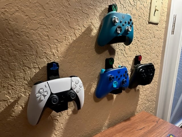 Tämä seinään asennettava ohjainteline on suunniteltu luomaan järjestystä ja helpon pääsyn peli-ohjaimiin. Se tarjoaa käytännöllisen ratkaisun ohjainten säilyttämiseen monista eri konsoleista, mukaan lukien Xbox Series X/S, PlayStation 5 ja Nintendo Switch Pro. Tämän suunnittelun avulla voit helposti poistaa sotkua pöydiltäsi ja hyllyiltäsi ja sen sijaan säilyttää ohjaimesi huomaamattomasti ja turvallisesti seinällä.