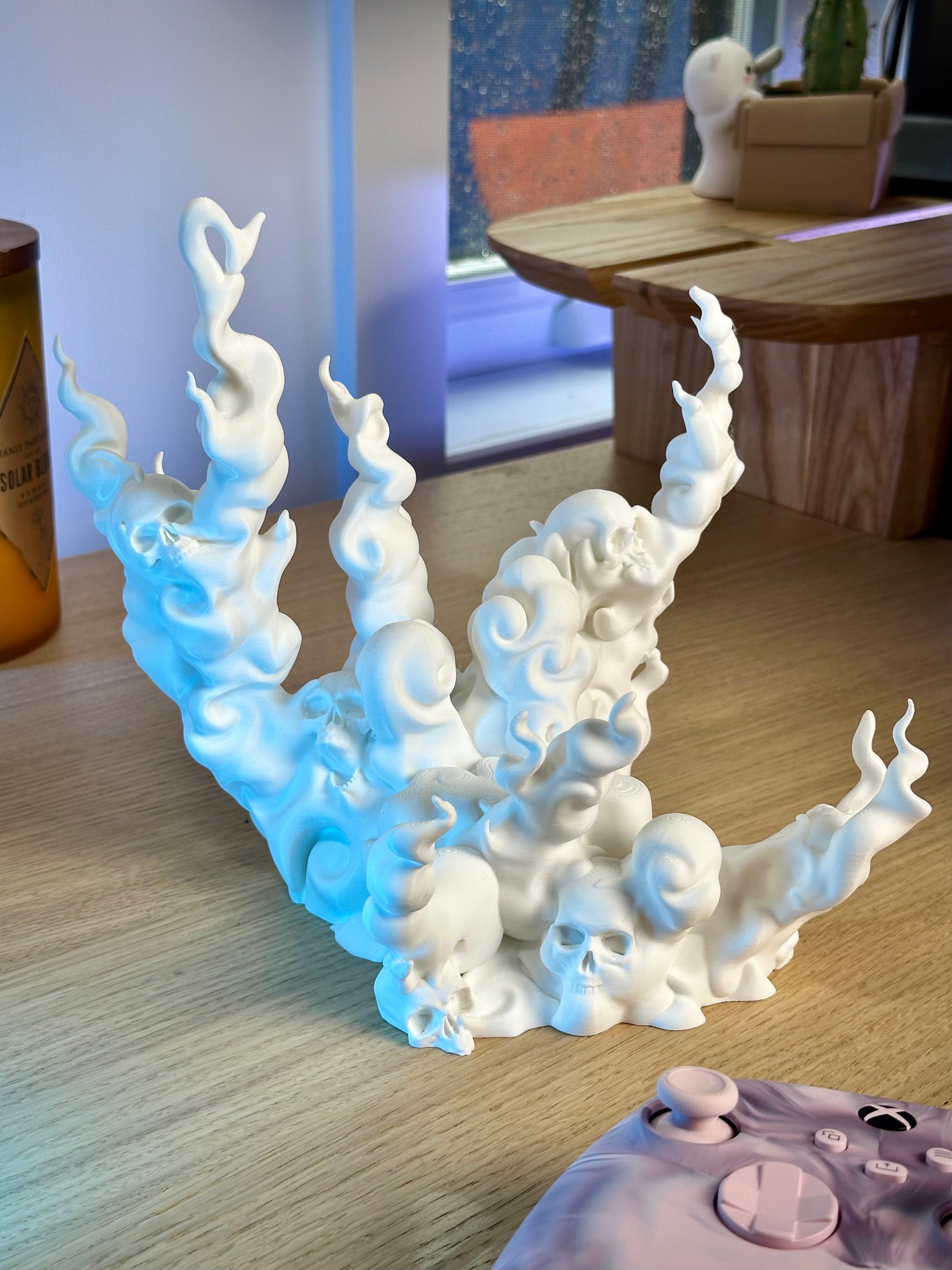 Aavemainen ohjainteline, joka on muotoiltu savua sylkevän pääkallon mukaan, pitää peliohjaimesi turvallisesti paikallaan. Se on yhteensopiva PS5-, PS4-, Xbox- ja Switch-ohjainten kanssa. Lisää upean fantasiaelementin peliympäristöösi.