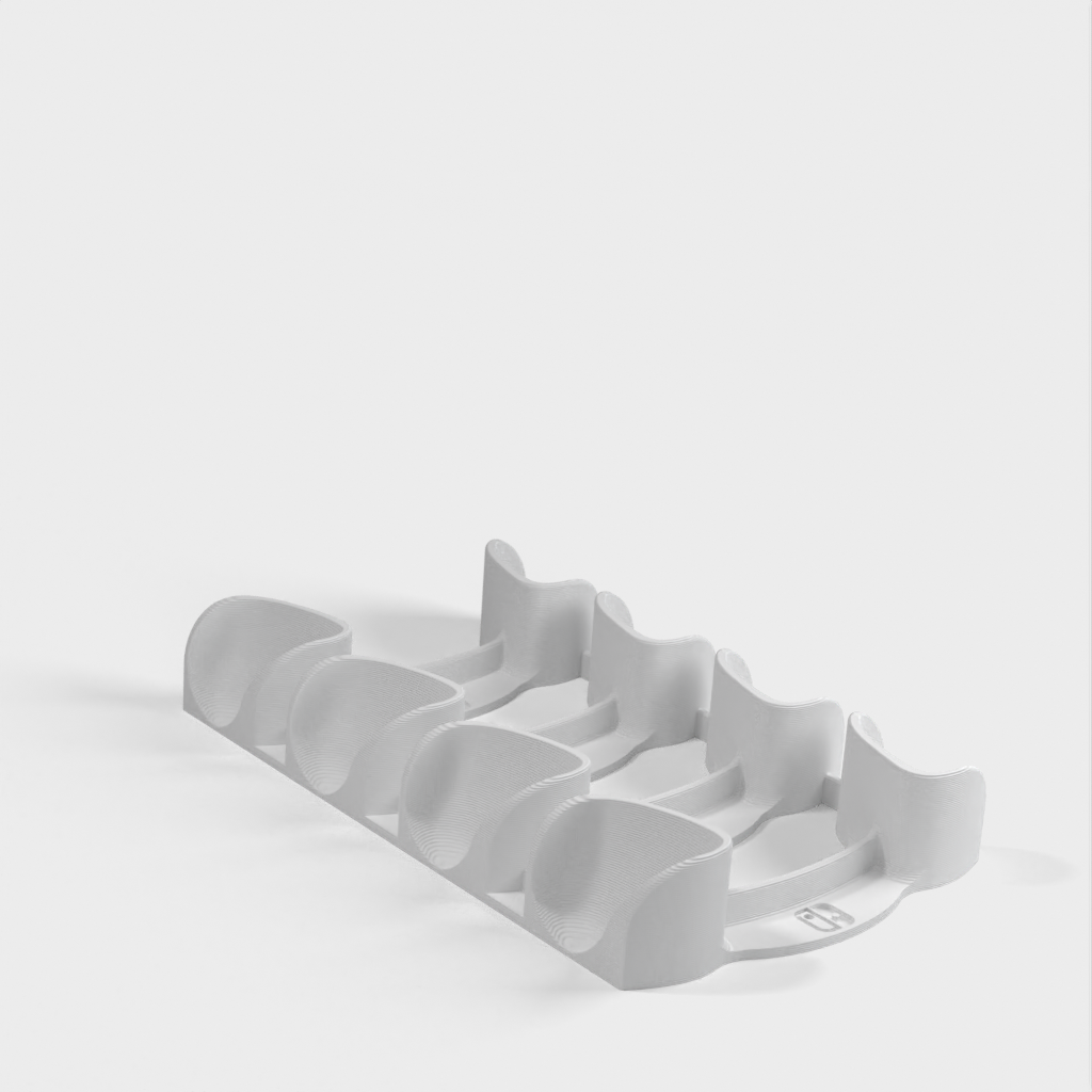 Tämä on vaakasuora jalusta neljälle Nintendo Switch Pro -ohjaimelle. Se on tilaa säästävä ja mahtuu helposti laatikkoon, mutta siinä on myös tilaa useammalle ohjaimelle.