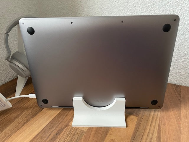 Tämä on pöytäteline MacBook Pro 13' M1:lle, joka sopii kaikille MacBookeille, joiden paksuus on enintään 16 mm. Se sopii täydellisesti työpöydän järjestämiseen ja antaa MacBookillesi turvallisen ja vakaan paikan, kun sitä ei käytetä.