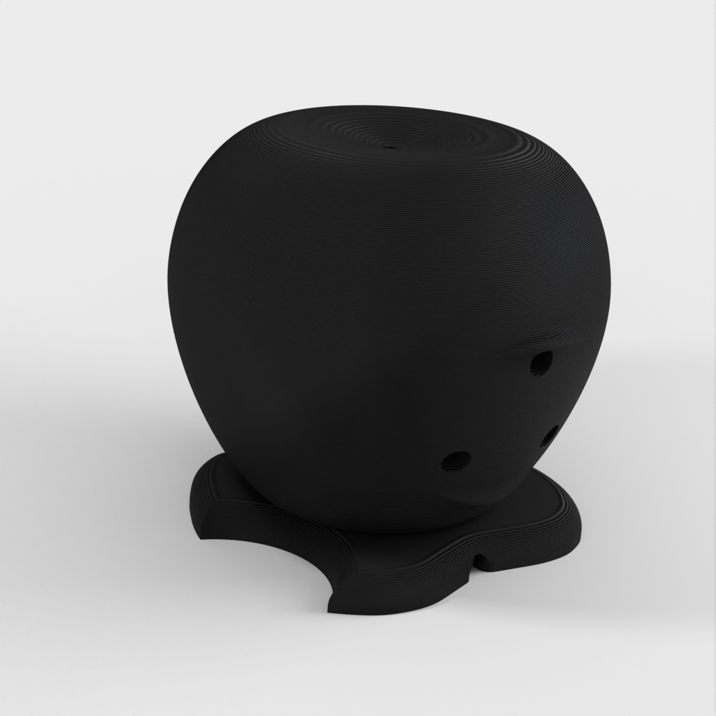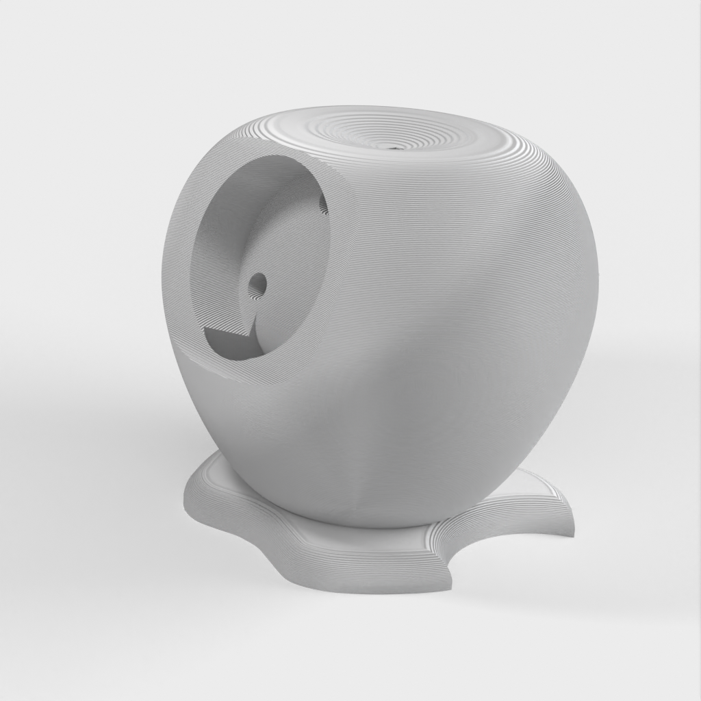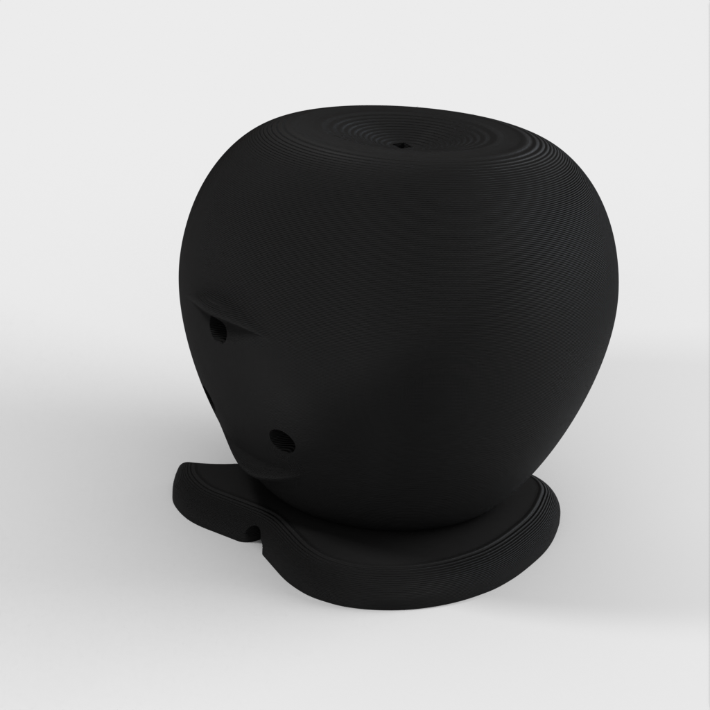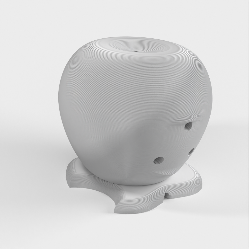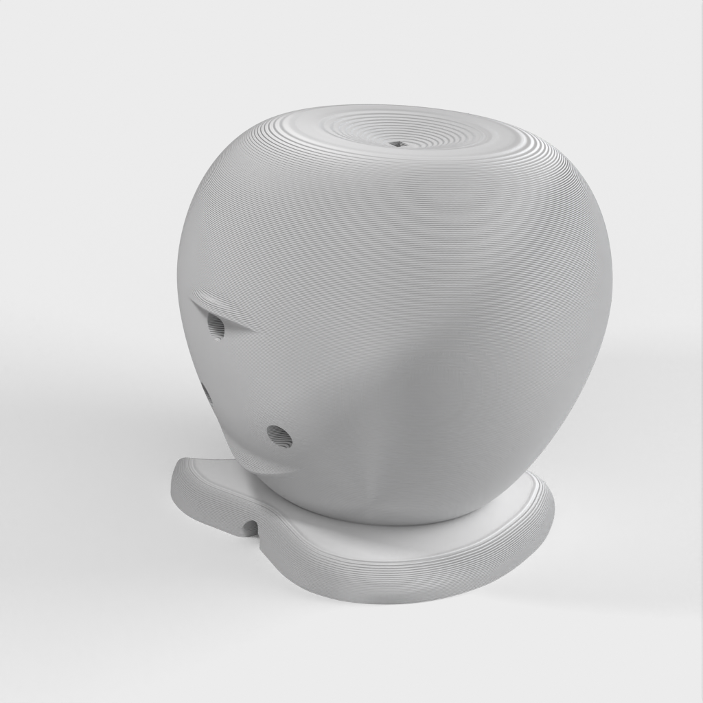 Latausteline Apple Watchille (40 mm), joka on suunniteltu Apple-logon muotoon. Kaapeli viedään reiän läpi ja laturi napsahtaa paikalleen. Mallissa on takana reiät, joista laturi voidaan tarvittaessa liu'uttaa ulos.